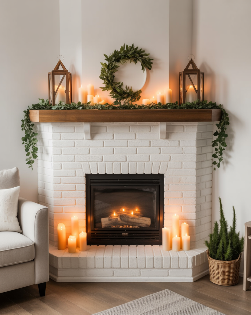 For those with a corner fireplace, decorating can feel tricky. The solution is to embrace asymmetry—use tall candlesticks or a stack of books to one side, and a shorter cluster of decor on the other. Adding greenery helps soften angles. I once styled a friend’s corner mantle with ivy and lanterns, and it turned a forgotten space into a cozy highlight.
