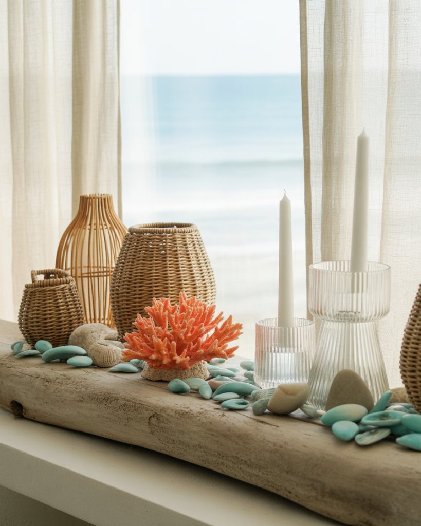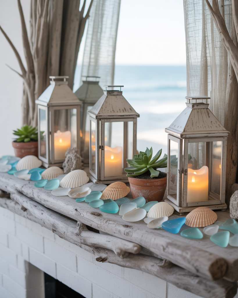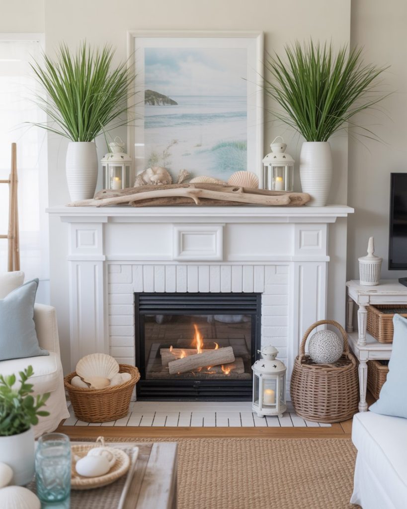 For homes near the water—or those who wish they were—a coastal mantle brings breezy freshness. Pair driftwood, shells, and white lanterns with calming blues. Even in a corner apartment far from the sea, this style invites relaxation and lightness. Designers like Serena & Lily frequently spotlight this soothing look.