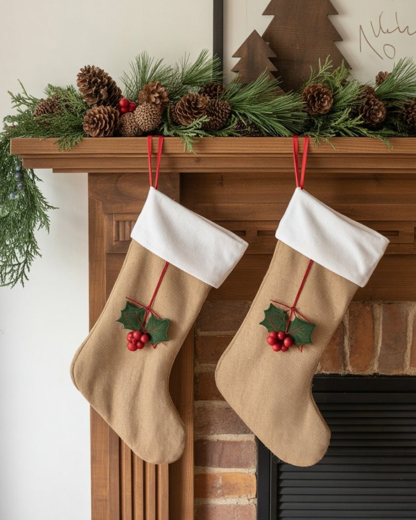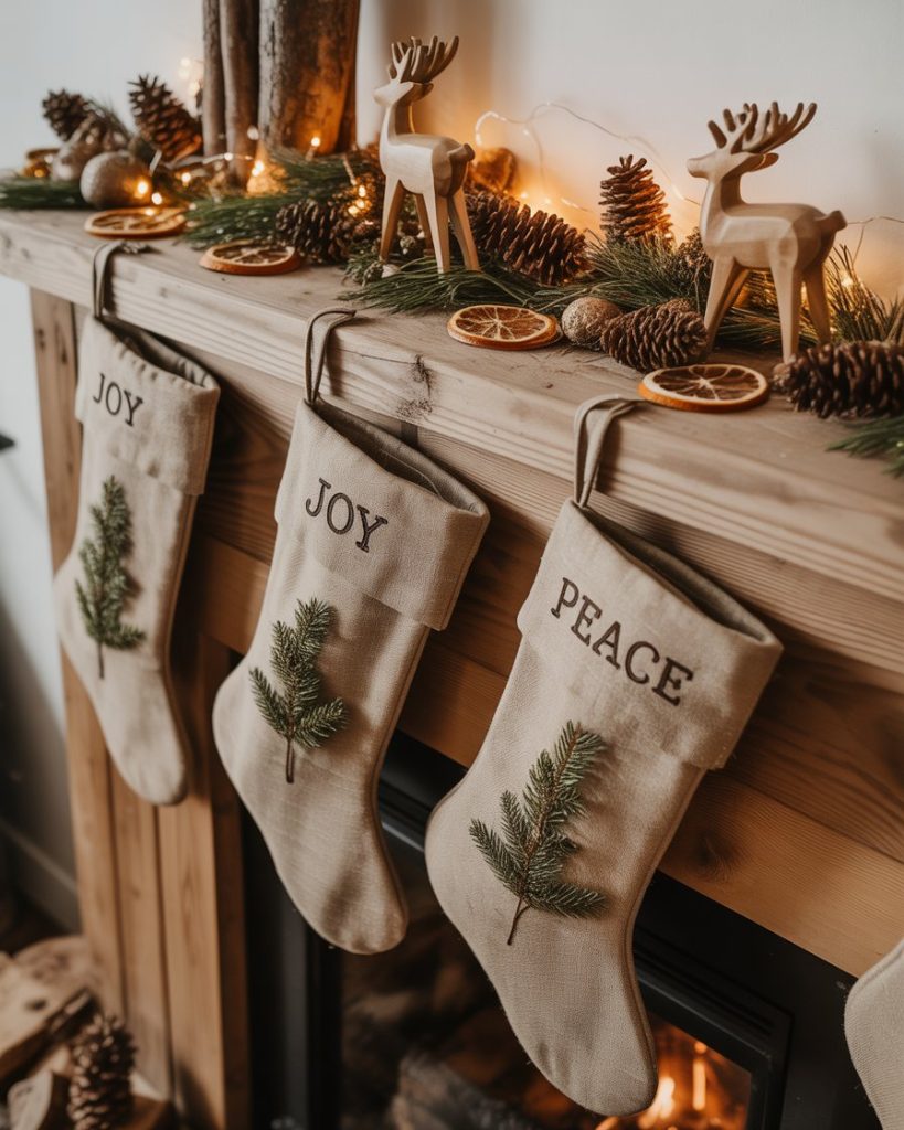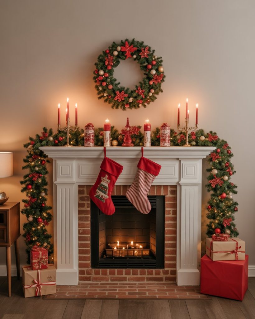 If you’re drawn to woodsy textures and warmth, a rustic christmas mantle is a beautiful choice. Use rough-hewn wood, burlap stockings, pinecones, and greenery. The effect feels close to nature, grounding the holiday in authenticity. I once visited a cabin in Colorado with this exact style—it made winter feel both grand and comforting.