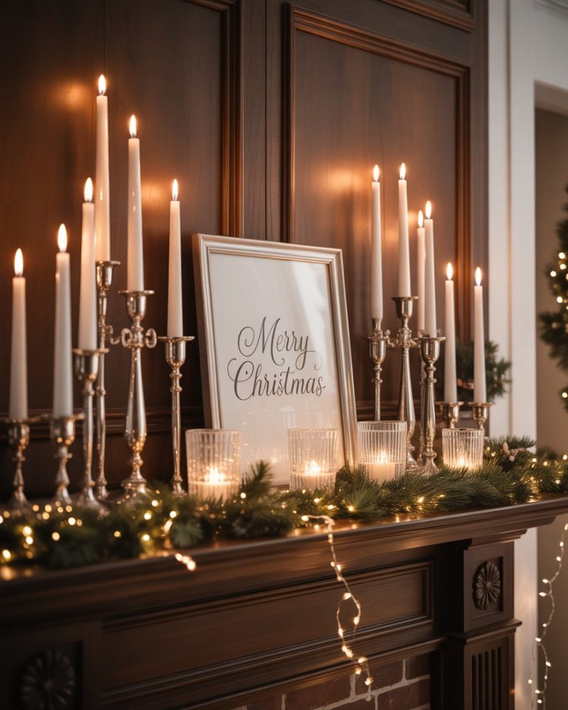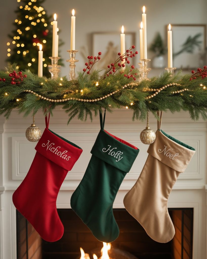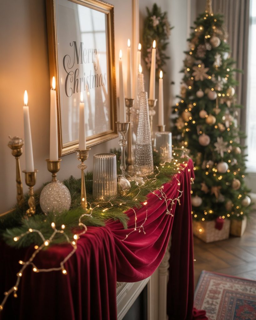 For those who love refinement, an elegant christmas mantle shimmers with metallics, crystal candleholders, and lush velvet stockings. Pairing silver or gold accents with white twinkle lights makes the space feel luxurious but never overdone. Designers at House Beautiful often showcase this look for urban homes seeking timeless glamor.