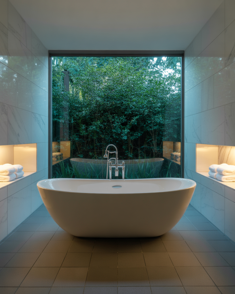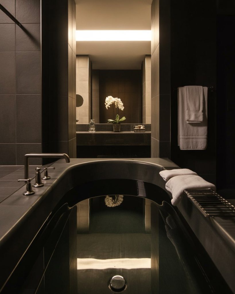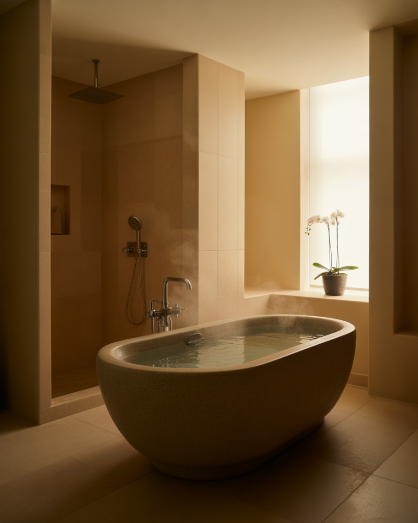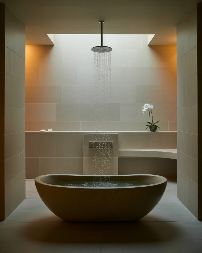 The spa-inspired bathroom is all about calm and wellness. Using neutral stone, a soaking tub, and soft light can transform your primary bath into a sanctuary. Even in a small full space, a rainfall shower or aromatherapy features bring relaxation. Designers like Kelly Hoppen remind us that spa bathrooms aren’t just luxurious—they’re about recharging after busy days, making self-care part of your home.