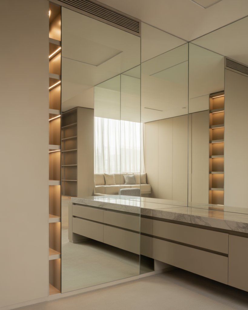 The ensuite bathroom evolves into a hybrid space by 2026, merging vanity areas with walk-in closets. This setup is popular in primary suites, where getting ready flows seamlessly. Neutral or grey backdrops keep it calm, while mirrors and good lighting ensure function. I’ve seen cute setups in city apartments that maximize space and luxury without feeling excessive.