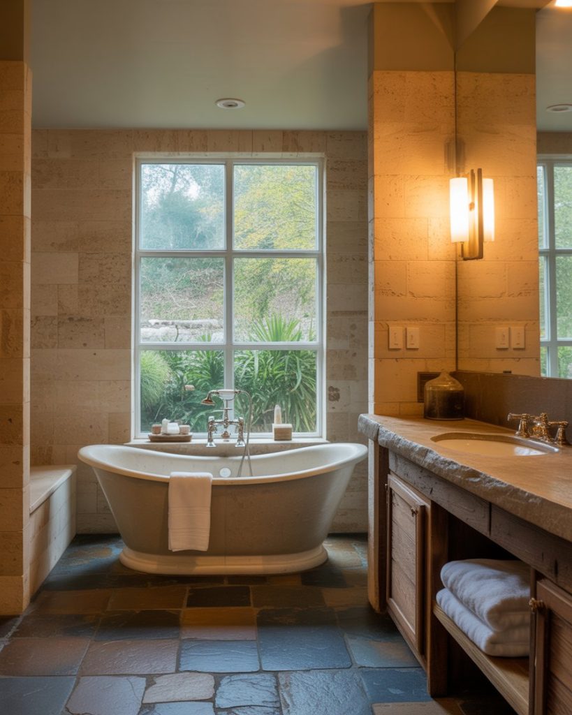 Stone textures like travertine, slate, and marble dominate rustic and modern designs alike. A primary bathroom with raw stone walls feels grounded, while a guest bath gains drama with a slate feature wall. Even tiny spaces benefit from stone-inspired tiles that add visual depth. Decor leaders say 2026 marks a return to natural authenticity in interiors.