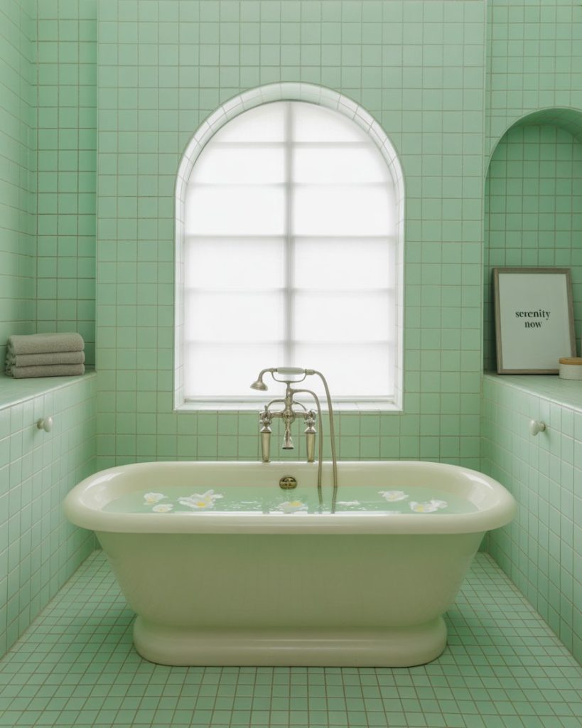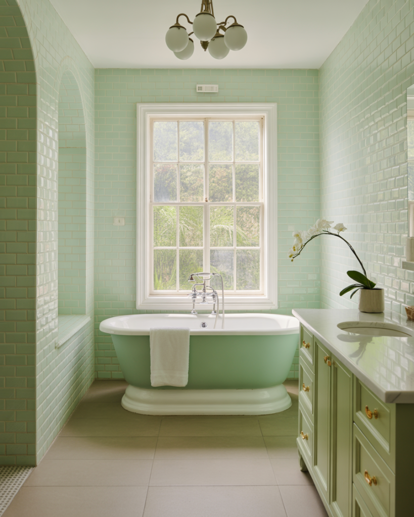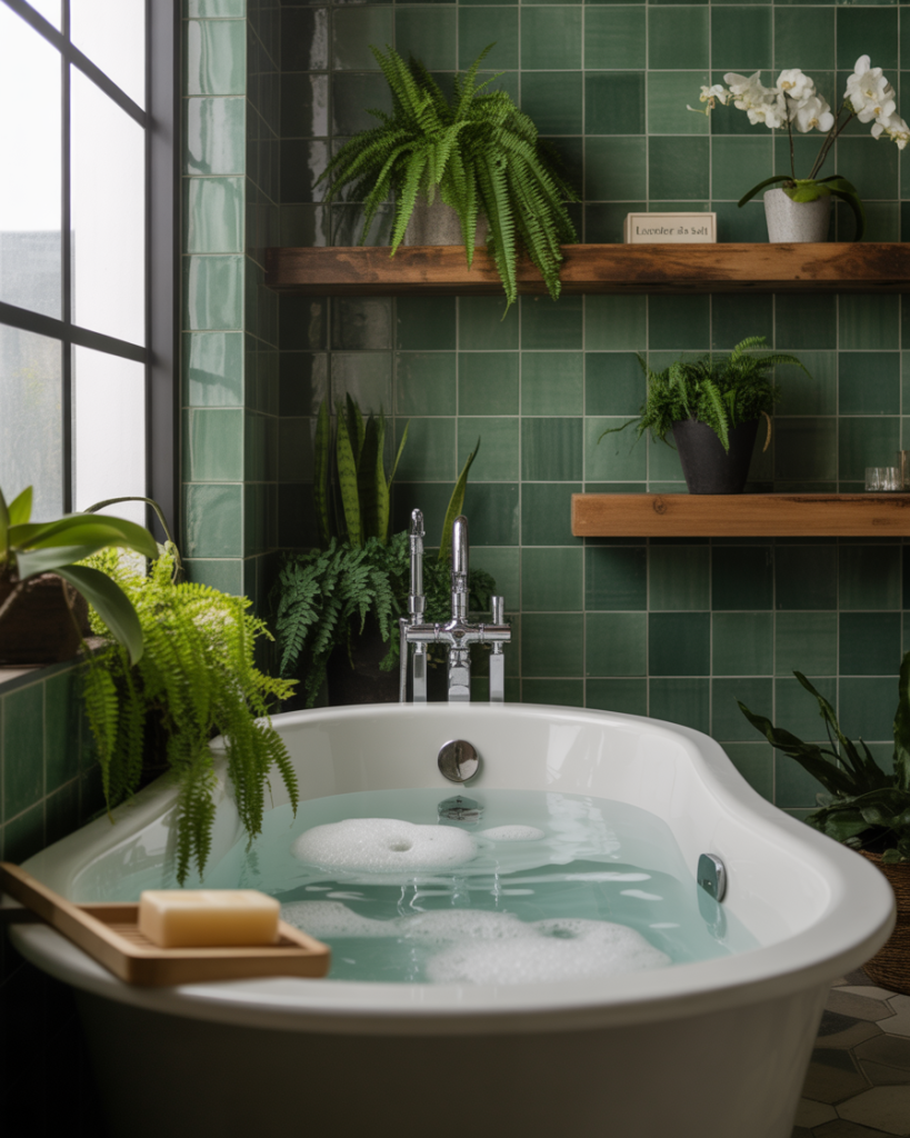 Adding green through plants or sage-colored tiles transforms a bathroom into a refreshing retreat. This style thrives in modern or rustic homes, but even a small full bath feels larger when plants bring in texture. A friend’s ensuite with hanging ivy and succulents felt surprisingly cute and uplifting, showing how greenery can improve mood and style at once.