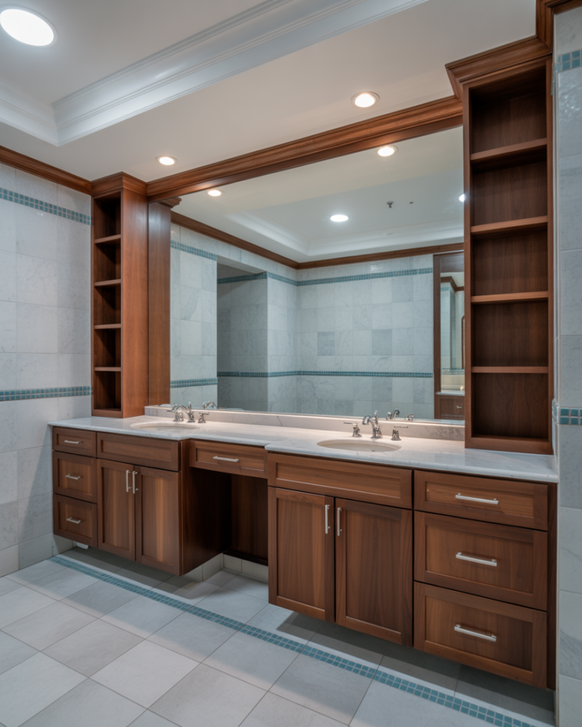 Smart mirrors, voice-controlled showers, and heated floors are becoming everyday luxuries. Modern technology fits seamlessly into primary or jack and jill baths, giving them efficiency and ease. Imagine adjusting shower temperature with your phone or enjoying built-in speakers while you get ready. Influencers on design platforms stress that the bathroom is becoming one of the smartest rooms in the house.