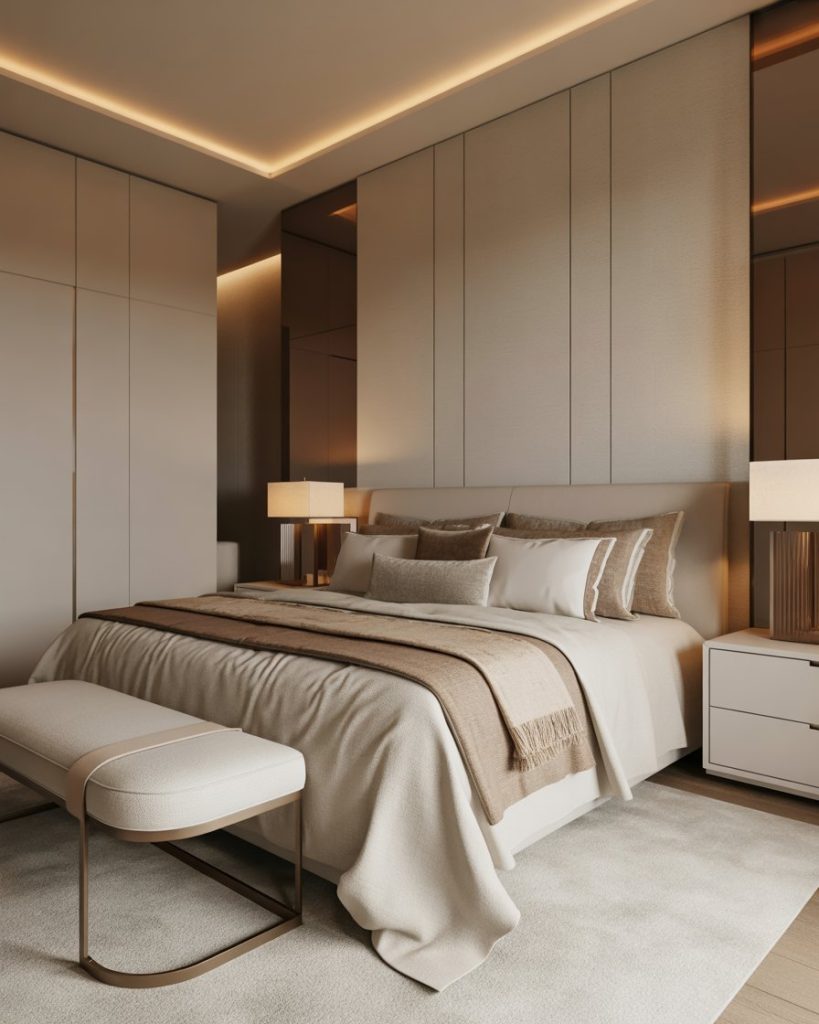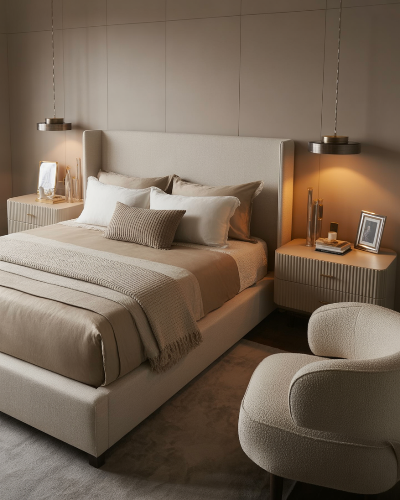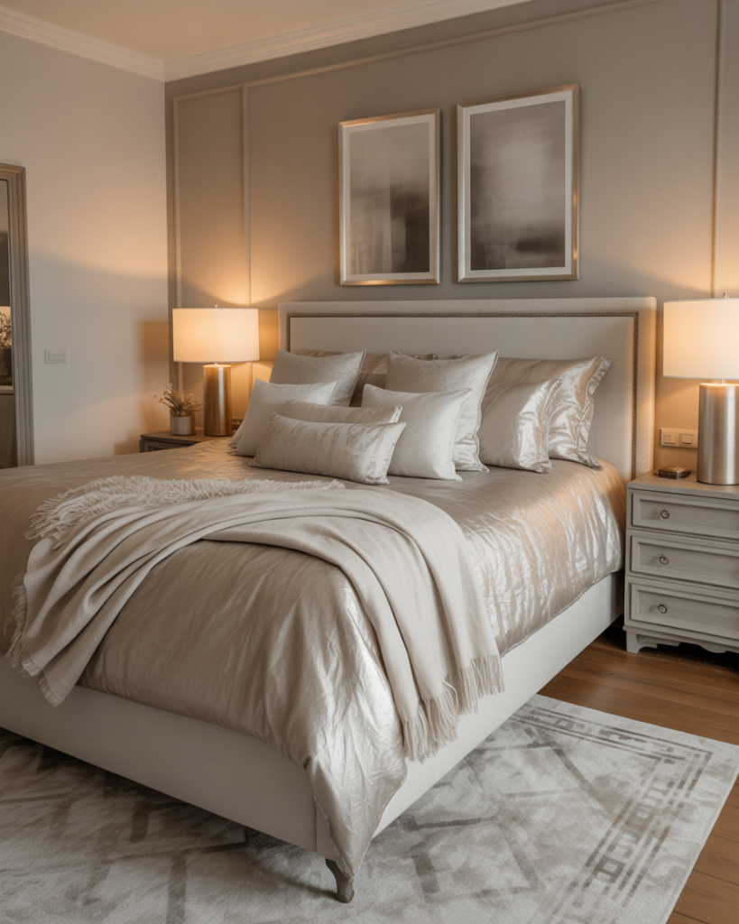 Instead of shiny gold overload, 2026 bedrooms introduce brushed metals—champagne, pewter, and rose bronze. Subtle, elegant, and perfect for anyone who wants gentle glamour without flash. Works with nearly any color palette.