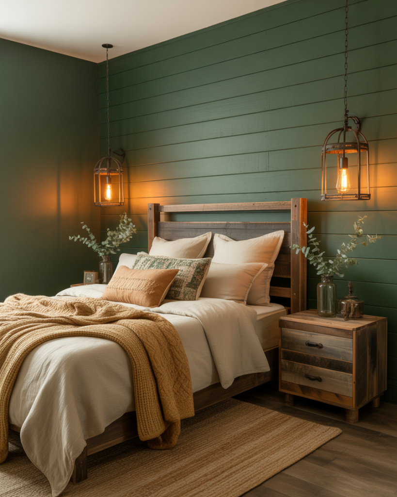 The new farmhouse style leans richer with dark green accents instead of all-white wood. Pair board-and-batten walls with iron lamps, plaid throws, and weathered oak furniture. The result feels rooted and comforting, like a heritage home with updated finishes. Great for anyone who wants rustic warmth with confident color, not another copy-and-paste farmhouse board.