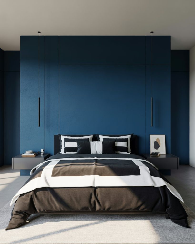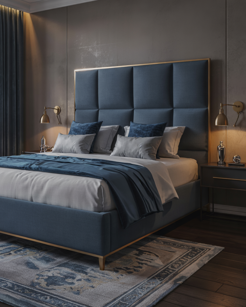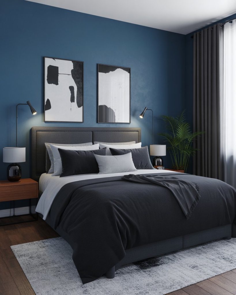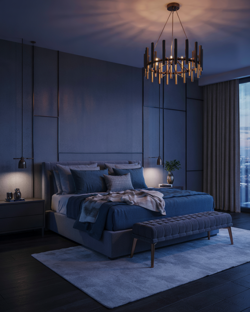 Deep blue continues as a favorite in primary suites where serenity meets drama. Paired with velvet drapery, brass accents, and low golden lighting, the result feels cinematic. Use tonal layering—navy on the walls, denim bedding, and sapphire décor—to create depth. Add a large upholstered headboard to ground the look and enhance acoustics. The result feels plush, confident, and timelessly rich.