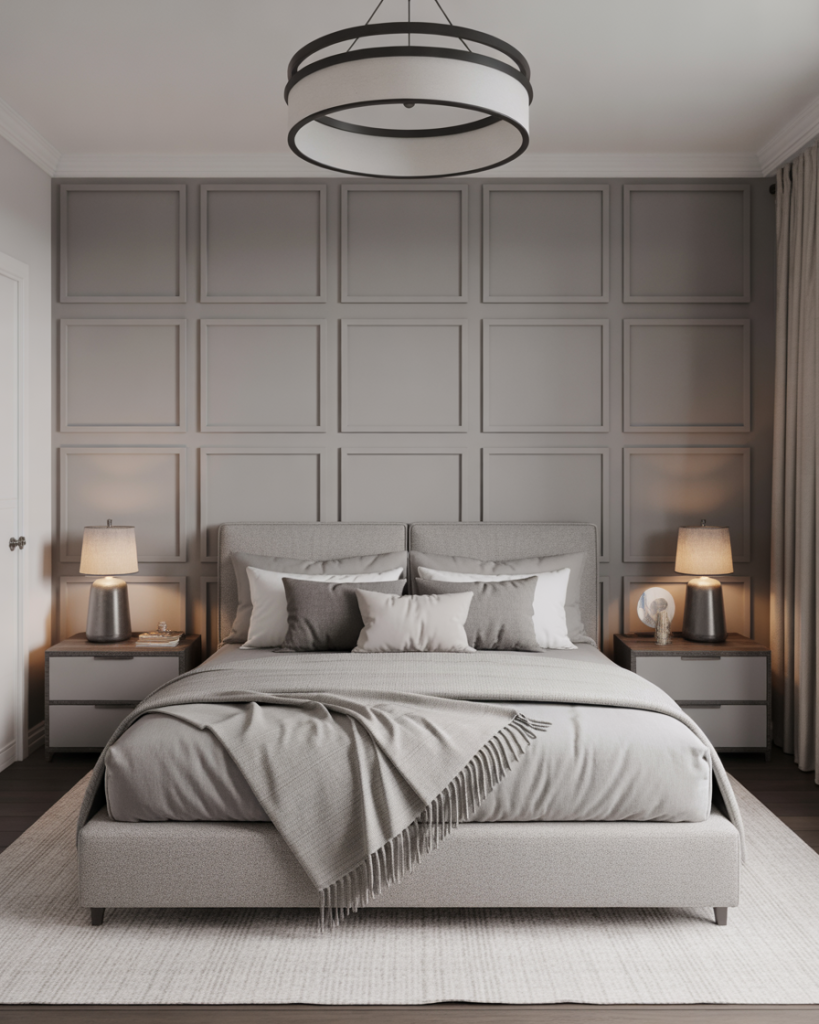 Fans of Bloxburg bring the same clean symmetry into real decor through soft grey tones, paneled headboards, and modular furniture. The secret is keeping everything structured but not sterile—one tactile element like bouclé or suede adds warmth. It’s the calm, organized space people love in-game, but adapted to real life.