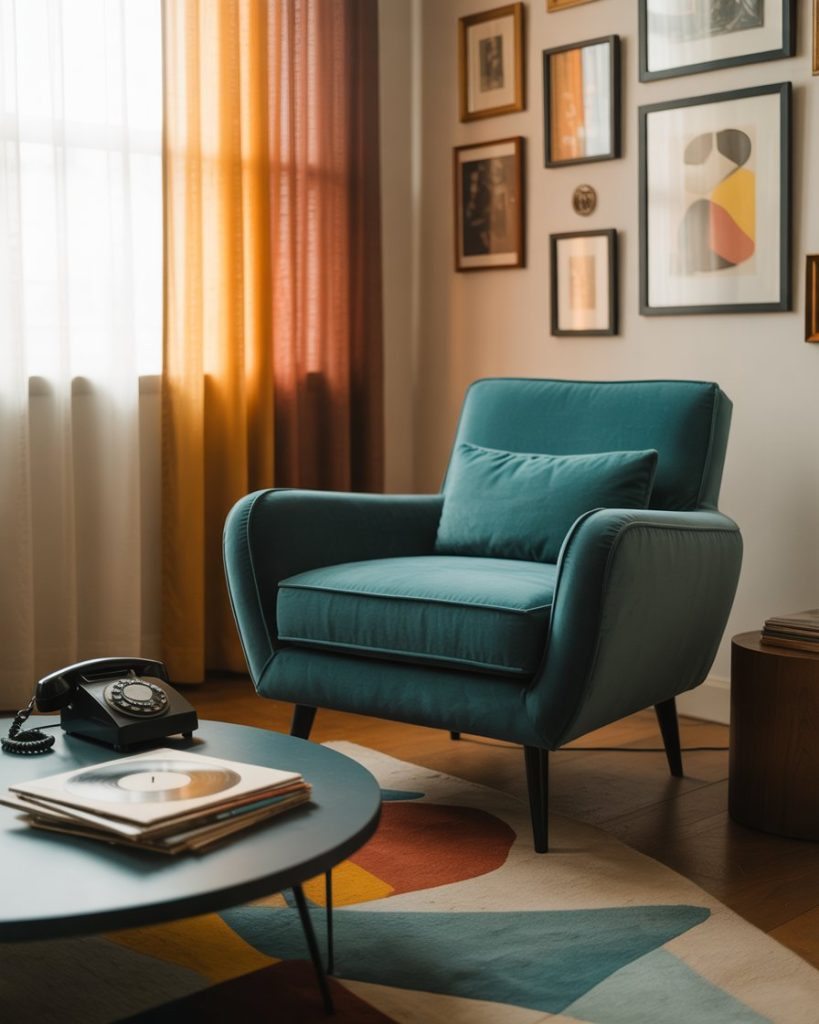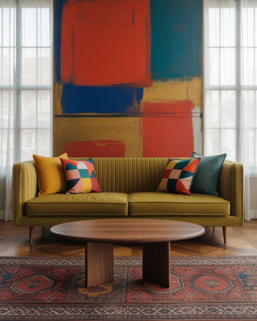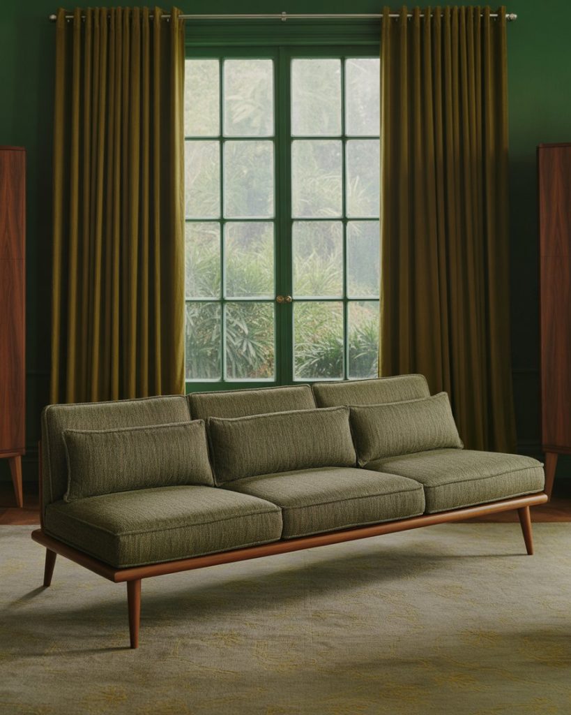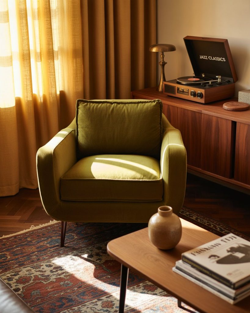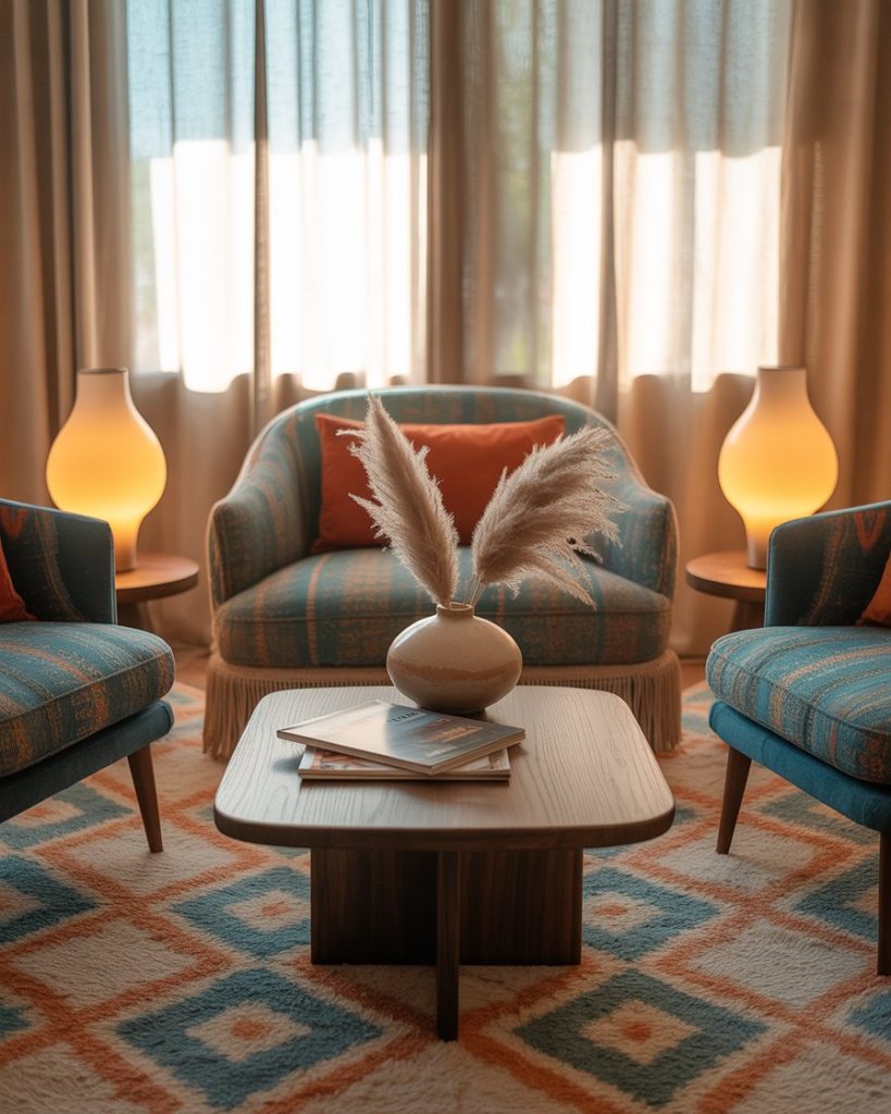 Above all, a cozy mid century modern living room draws on textures and natural warmth. Think wool throws and layered curtains with a soft rug to define the seating area. This retro interior design idea, merged with organic woods, creates a space that is familiar and well-worn. It is best suited for smaller homes or apartments, where comfort matters most-to hang around the low styles furniture setting in-appreciative company.