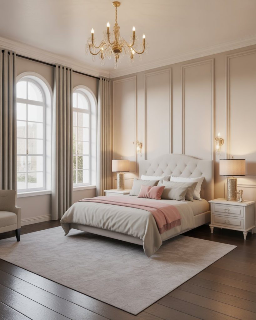 Finally, we see a playful blend where classic elegance meets virtual Bloxburg-style experimentation. Younger homeowners, inspired by gaming design platforms, translate digital creativity into real-world decor. Panelled walls, arched windows, and elegant furniture bring interior luxury, while playful color choices or modular layouts keep it fresh. It’s proof that inspiration can come from both tradition and digital life.