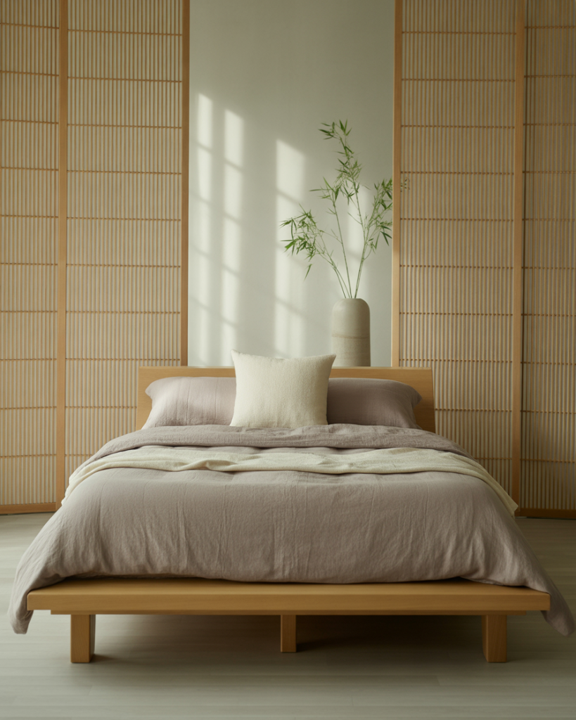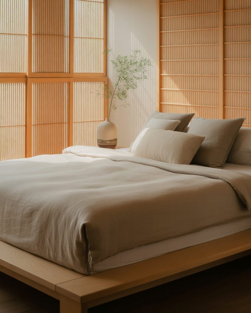 The Japandi trend blends Japanese simplicity with Scandinavian functionality. This interior design style thrives on natural wood, low furniture, and calming neutral tones. Bedrooms become sanctuaries with sliding screens, soft textiles, and uncluttered layouts. It’s a fusion that feels both minimalist and organic, offering a peaceful retreat in our busy lives.