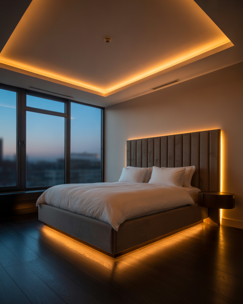 Lighting in 2026 has become more than functional—it’s experiential. Bedrooms now integrate smart systems that adjust brightness and color temperature based on mood or time of day. These ceiling design ideas and wall features create a dynamic atmosphere, perfect for winding down or energizing mornings. It’s design luxury that merges tech with comfort.