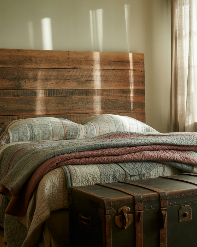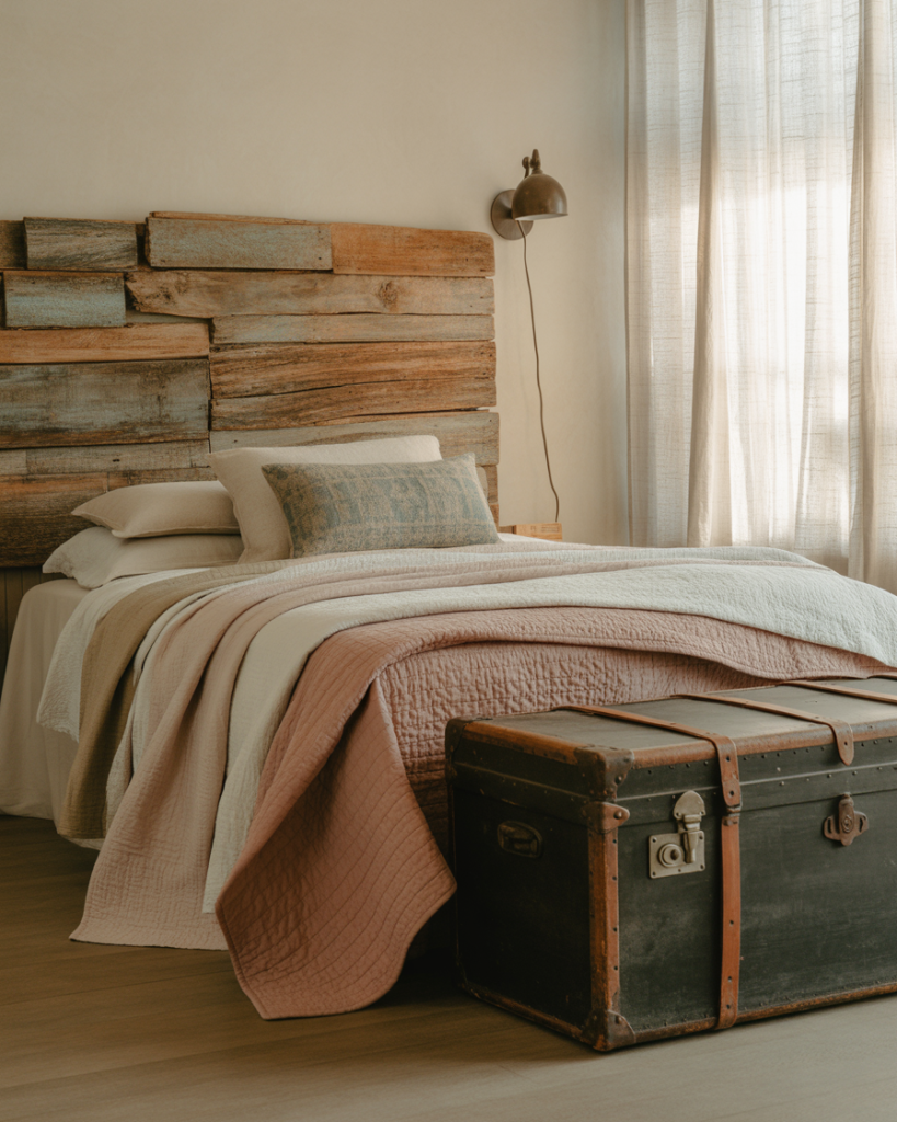 Rustic charm mixed with vintage decor gives bedrooms a soulful feel. Old trunks, reclaimed barn wood headboards, and layered quilts connect us with the past, while still blending seamlessly into modern interiors. Many Americans love this mix because it balances nostalgia with current trends. It’s both stylish and personal, reminding us of road trips through small towns and antique fairs.