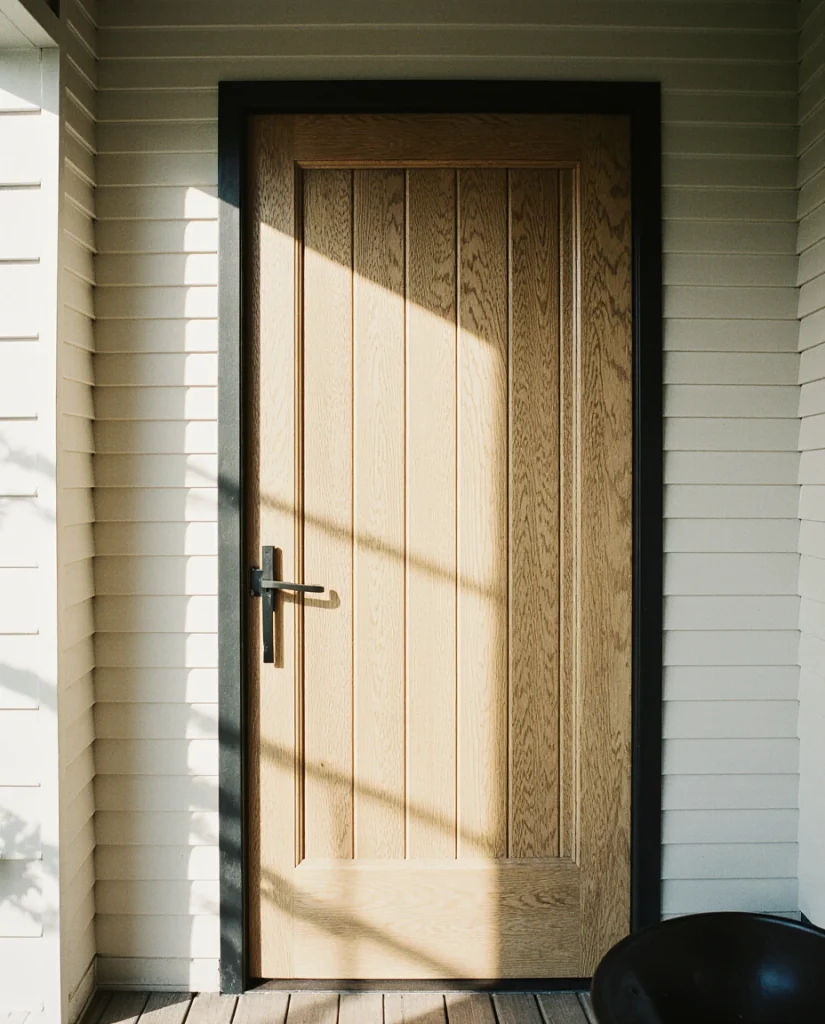 Where this works best is in covered entry situations where the door receives weather protection from porch roofs or deep overhangs, as both white oak and ipe, while durable, perform best with some shelter from direct rain and UV exposure. Solid wood doors in these species run $2,500 to $5,000 depending on size and whether they’re custom-built or semi-custom from specialty manufacturers like Simpson or TruStile. The natural finish requires maintenance every 2 to 4 years with an oil or varnish refresh to prevent weathering, though many homeowners appreciate this ritual connection with their home’s materials—a quarterly door oiling taking 20 minutes becomes a meditative practice rather than a burden for those who value craft and material longevity.