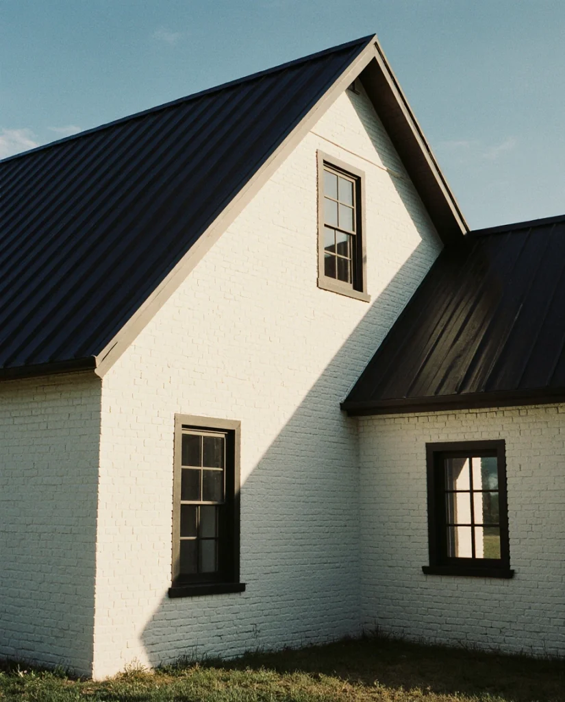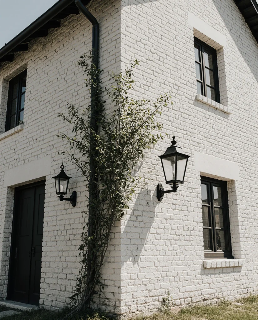 Solid painted brick in warm whites with subtle cream or gray undertones creates a refined backdrop that allows architectural details like black trim, metal roofing, and window groupings to stand forward as primary visual elements. This treatment differs from whitewashing by completely covering the brick in opaque paint, creating a smooth, unified surface that reads almost like stucco from a distance while retaining brick’s inherent texture and shadow-catching qualities up close. The Scandinavian influence here is unmistakable, bringing Nordic clarity and light-reflective properties to traditional American building materials in ways that feel both fresh and appropriate to small space design, where every surface should maximize brightness.