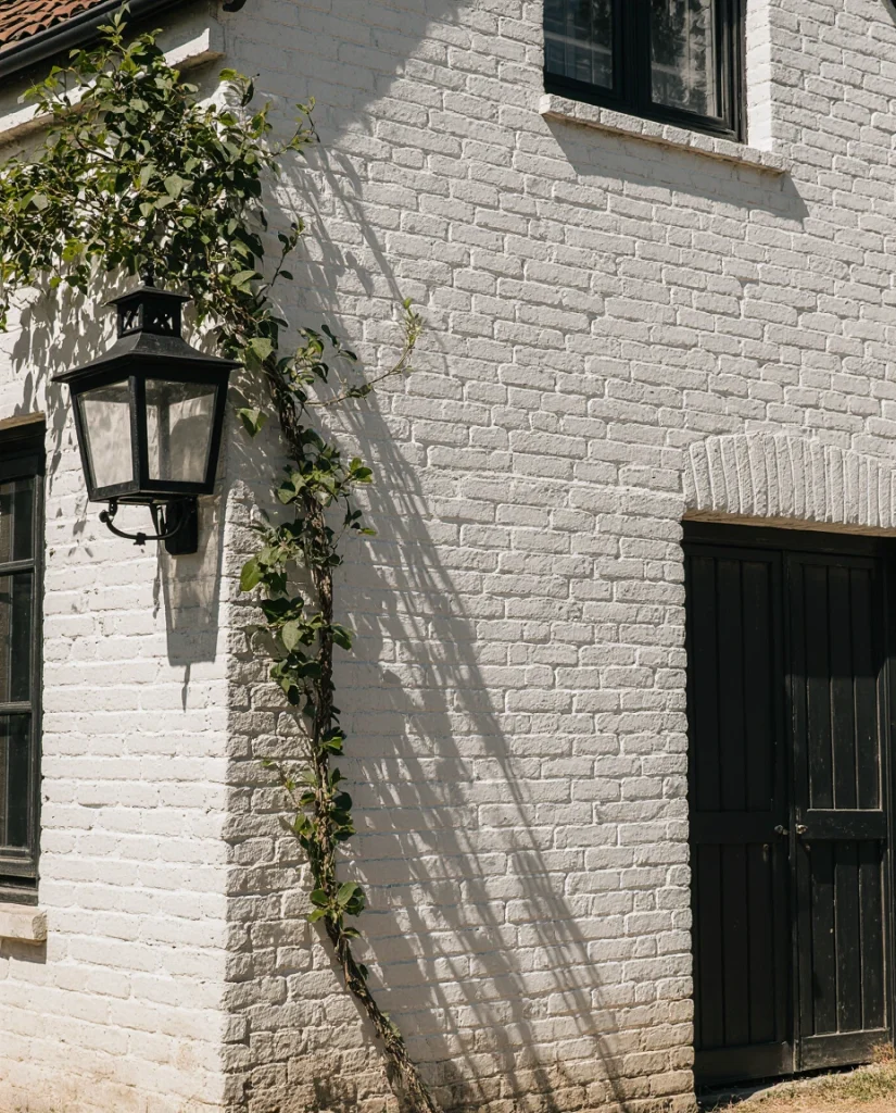 People often prefer the look of textured, whitewashed brick to painted, smooth finishes. Whitewashed brick exteriors bring texture and depth unmatched by painted smooth surfaces, with the brick’s natural variation showing through the diluted paint, creating a weathered look. It works particularly well in geographic areas with brick housing stock, as homeowners can refresh dated red and brown brick to resemble contemporary and Scandinavian styles while retaining original material character. Such character was achieved by German schmear application, where mortar is smeared across brick faces, or white paint is used in a thinned fashion and partially removed. Each approach conveys aged authenticity, and the schmear application is aged in a way synthetic, machine-covered coatings cannot replicate.