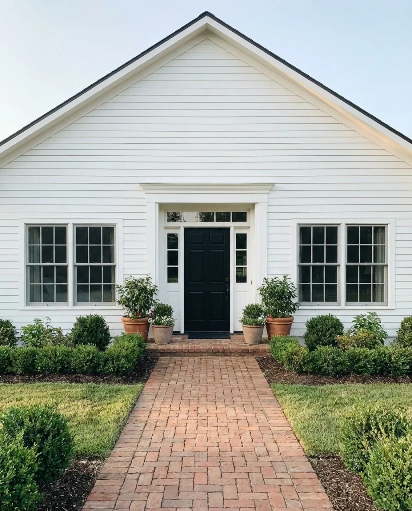 Classical symmetry brings order and formality to modern farmhouse exteriors, with centered front doors flanked by matching window arrangements that reference Greek Revival and Colonial precedents. This compositional strategy works particularly well for small apartment conversions to single-family homes or new construction on compact urban lots where every facade element must work hard to establish presence and curb appeal. The symmetrical arrangement photographs beautifully, creating instantly recognizable images that perform well on Pinterest and Instagram, explaining why this approach dominates design inspiration boards despite requiring careful floor plan coordination to align interior room layouts with exterior window placement.
