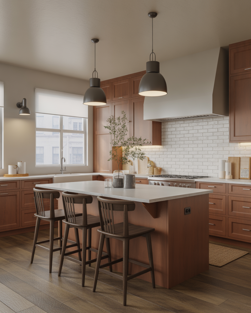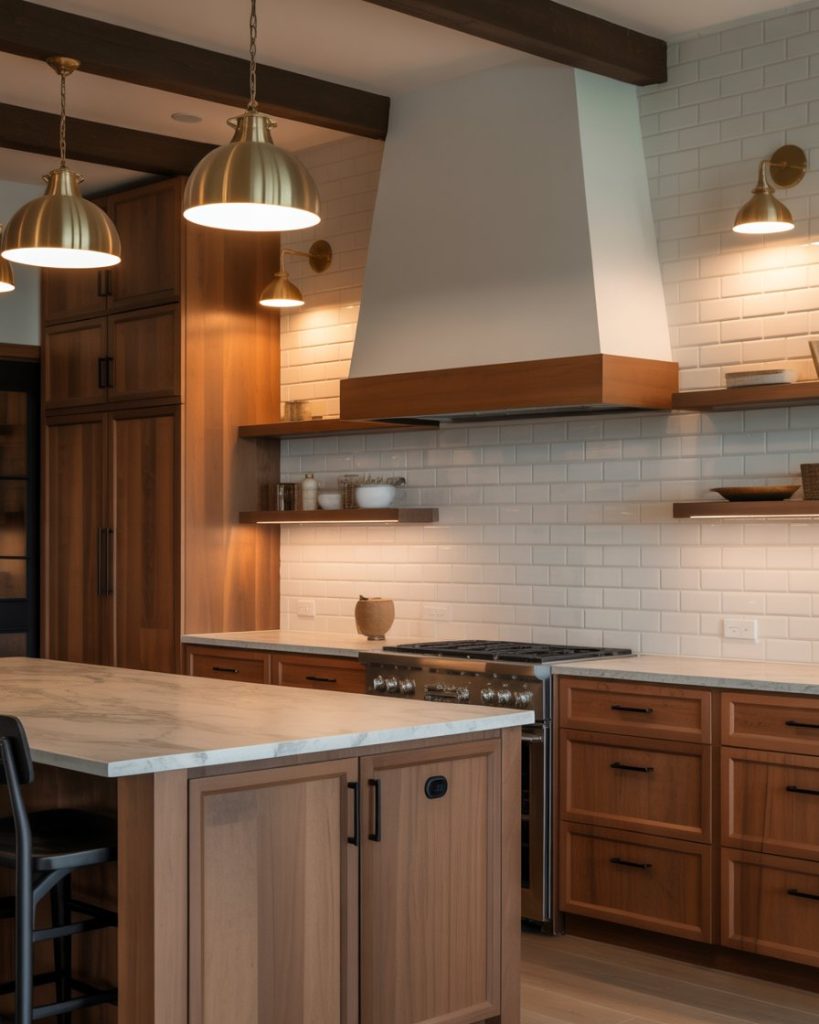 Combining recessed lighting, sconces, and soft pendant lights creates depth and flexibility. Warm bulbs enhance natural textures, making wood cabinets and stone countertops glow. This layered approach defines 2026 kitchens where ambiance and practicality blend effortlessly for daily comfort.