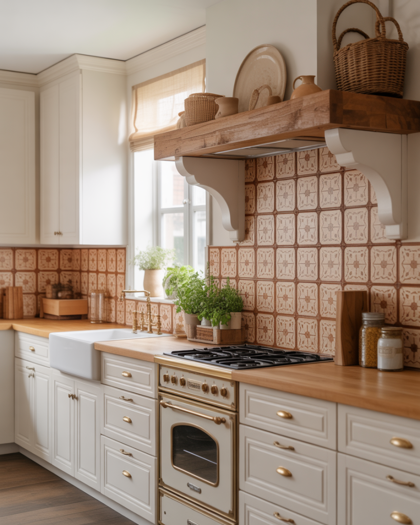 A bold backsplash can transform a neutral space. In 2026, we see geometric terracotta, hand-painted floral backsplash tile, and patterned stone mosaics paired with white cabinetry. These designs offer a balance between tradition and creativity, perfect for homeowners wanting subtle flair without losing warmth.