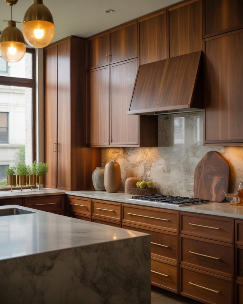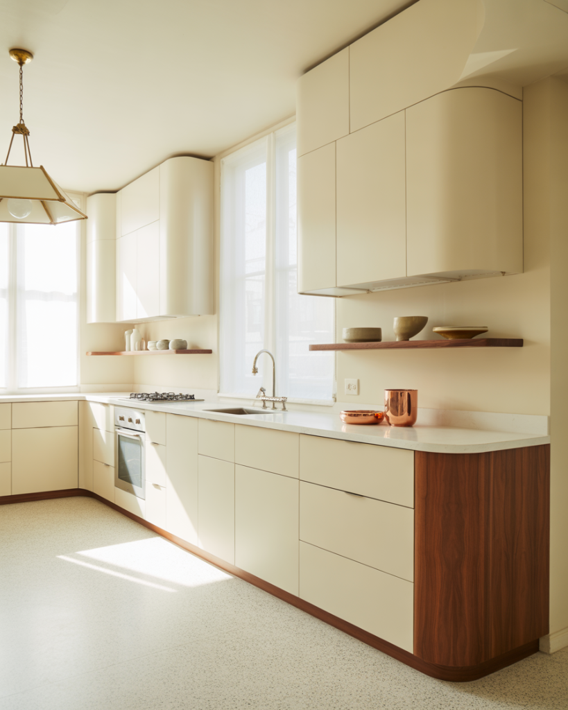 A vintage-inspired space with luxury finishes is perfect for people who want individuality without excess. Brass details, warm walnut, and mid-century shapes instantly elevate the room. Designers often mention that blending eras prevents a kitchen from feeling sterile, giving depth and charm while remaining polished for everyday use.