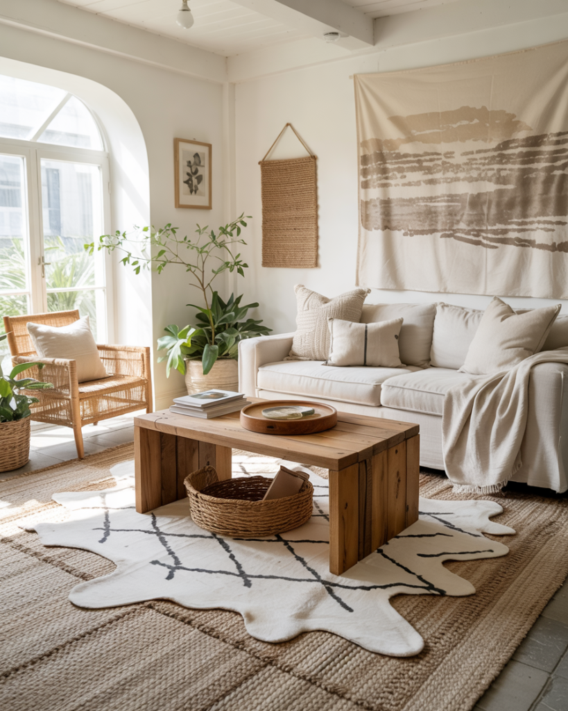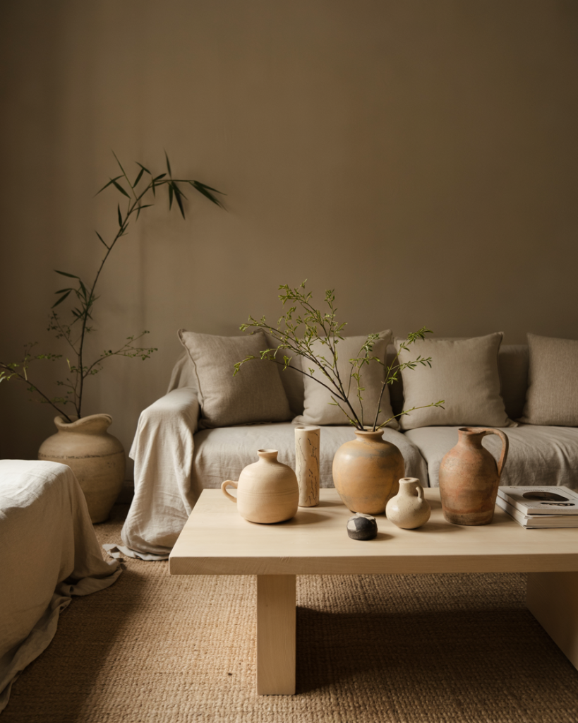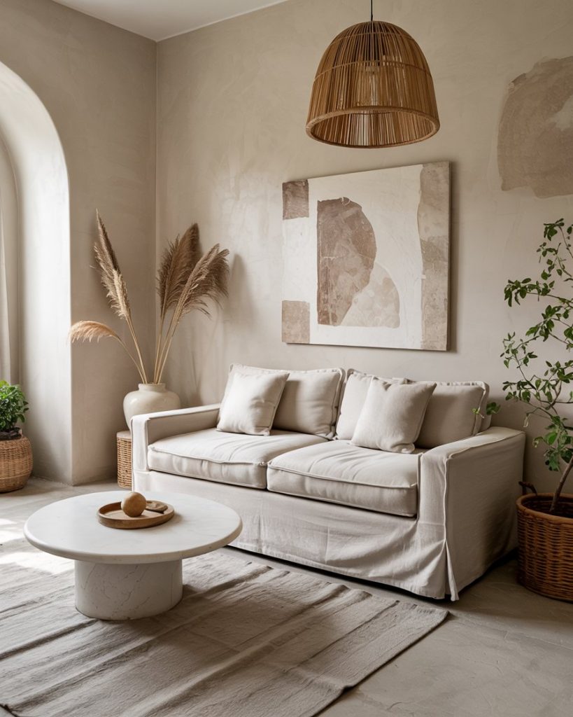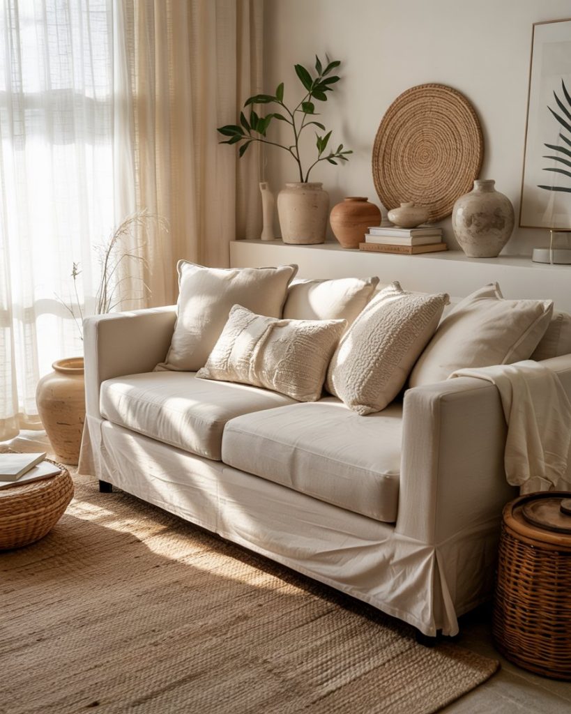 Ideas Decor Earthy, cozy Colors are the heart of this look, mixing oatmeal sofas, stone pottery, and woven baskets for a space that feels collected, not staged. This style works beautifully in an apartment or suburban home alike, because it relies on layering fabrics—linen, cotton, and boucle—to build warmth without visual noise. A single vintage vase or clay lamp instantly adds pedigree, making the room feel lived-in rather than showroom-fresh.