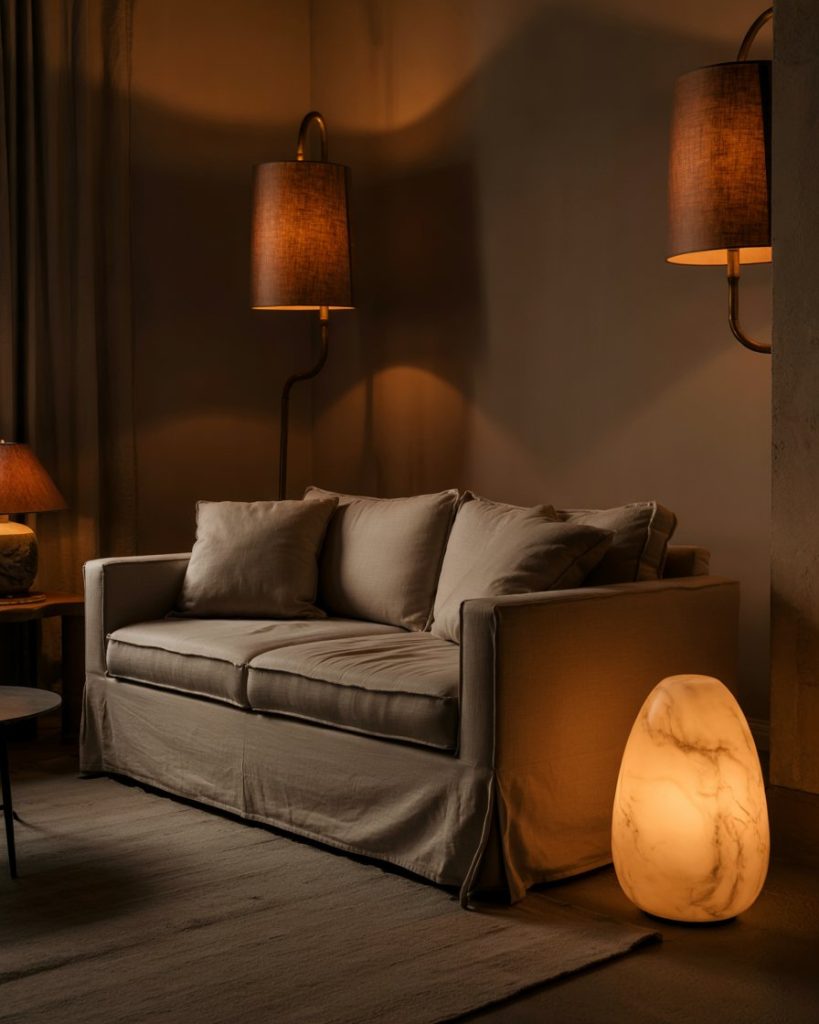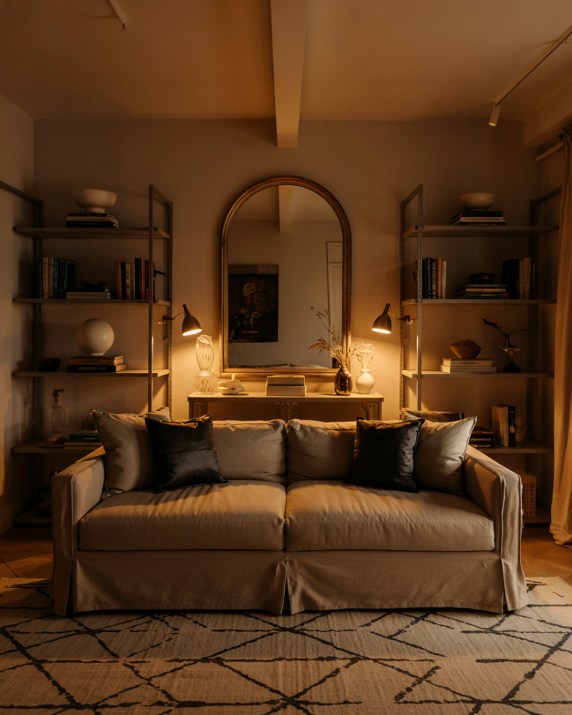 Moody dark decor colors and lighting give neutral rooms their cinematic magic. In 2026, designers prefer warm amber bulbs, sculptural lamps, and dimmable sconces to shape mood throughout the day. Layered light sources make beige tones feel deeper and richer. Pairing linen shades with bronze or black fixtures enhances visual warmth. The room becomes a sanctuary where every shadow feels intentional and artistic.