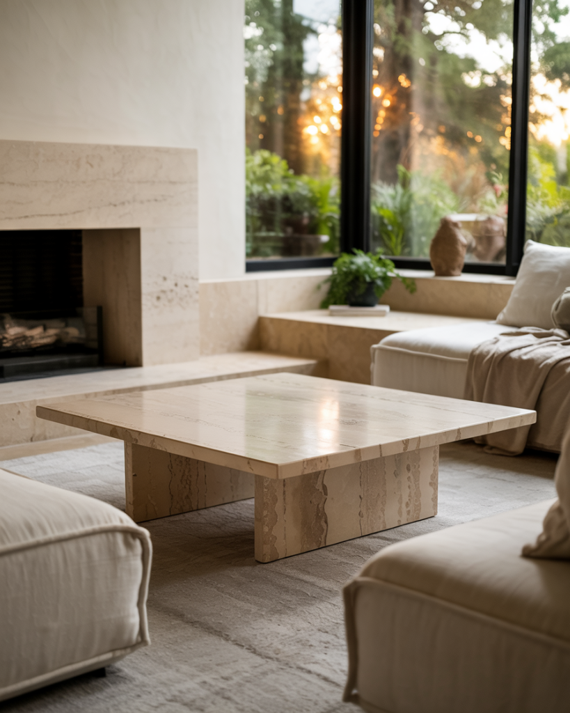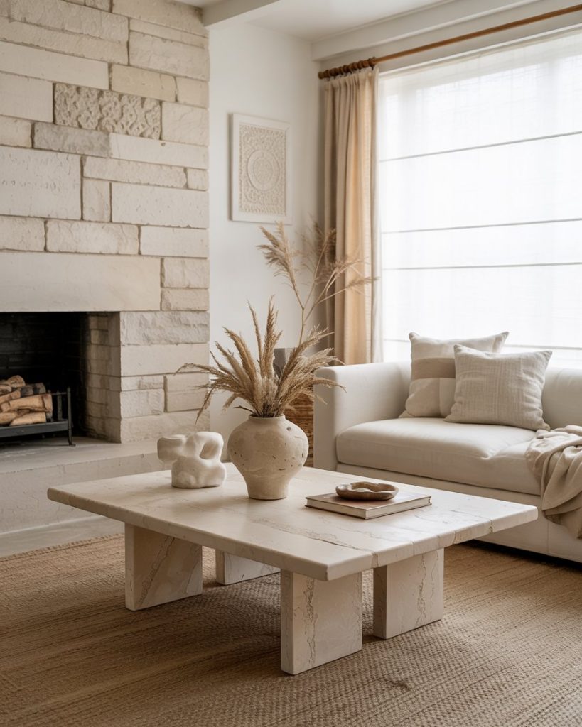 Organic Decor Paint Inspiration Living rooms of 2026 feature stone accents like travertine coffee tables, limestone mantels, and marble shelves. Their warm, natural feel works beautifully with soft furnishings and neutral shades. Designers like Kelly Wearstler elevate stone’s permanence as quiet luxury. Surfaces in a room capture light and shadow elegantly and prove that soft neutral shades can be dramatic.