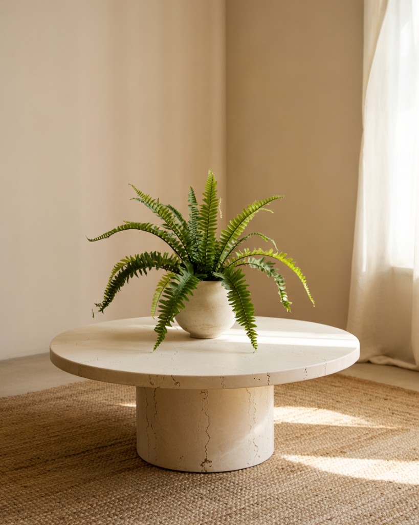 Green and Organic Inspiration Rug details—olive throws, sage ceramics, even a jute rug—echo the outdoors and soften structured furniture. Biophilic design leaders at Architectural Digest note that green registers as a “restorative neutral,” especially when paired with clay or travertine. Even one leafy fern on a pedestal table can reset the room’s mood.