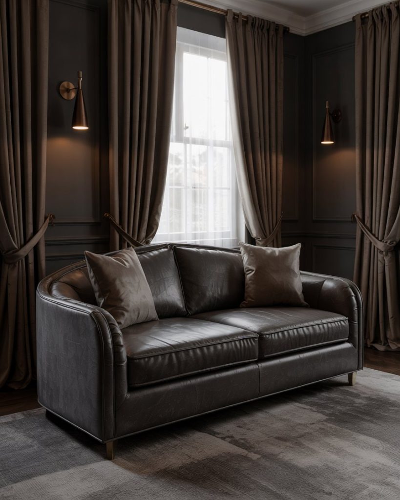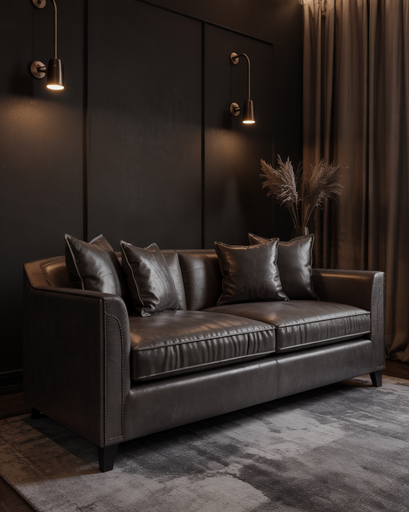 Moody Dark Paint color ideas The decor leans into espresso walls, smoky taupe drapery, and bronze lamps that glow like candlelight. This palette proves a living room can feel intimate without turning gothic. Use velvet or chenille to catch light and keep things touchable. Great for evening loungers who want the room to hug them back.