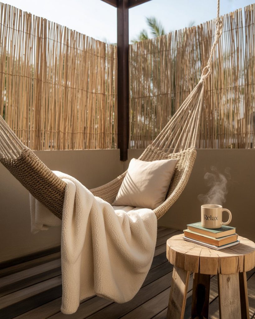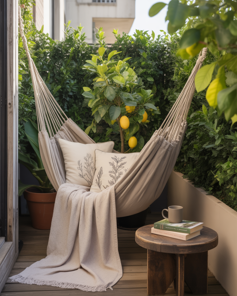 For book lovers, turning a patio into a cozy reading nook is perfect. A hammock, cushioned chair, or swinging bench works in tiny patios or apartment balconies. Add privacy panels, a side table, and warm lighting, and you’ve created a retreat for slow mornings or quiet nights. Even on a budget, this simple diy project elevates your outdoor routine. Designers often suggest layering blankets and pillows for comfort.