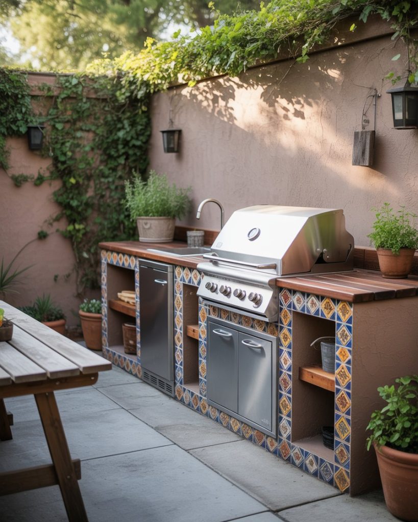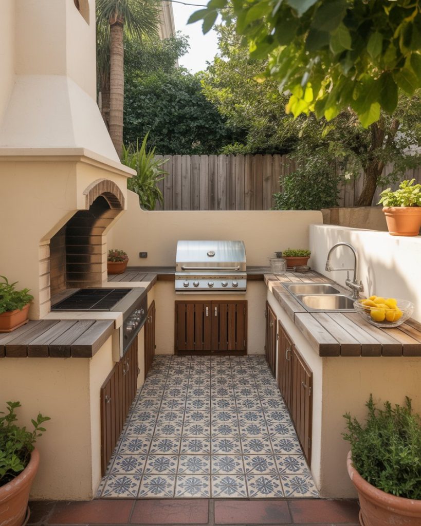 An outdoor kitchen elevates entertaining, especially if your backyards host frequent barbecues or parties. From compact grills for a budget to expansive setups for large spaces, the appeal lies in combining food and atmosphere. Incorporating Spanish style tiles or rustic wood details makes it unique, while simple diy builds are trending for smaller patios. Joanna Gaines often emphasizes blending indoor charm with outdoor functionality in kitchens.