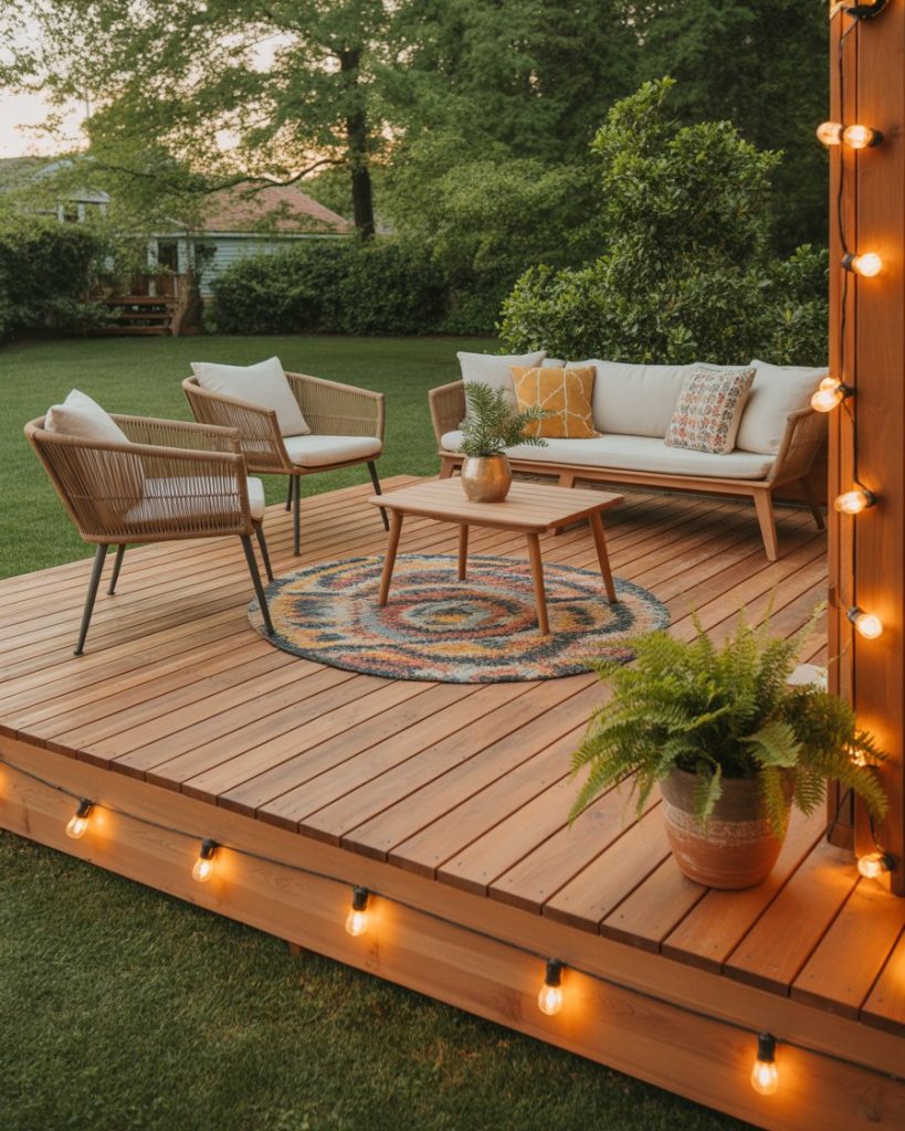 Sometimes the most impactful ideas are simple. Building a small deck or resurfacing an old one can drastically upgrade your patio. This approach works for tiny backyards and expansive ones alike. With diy kits widely available at stores like Home Depot, it’s easier than ever to stay within a budget while achieving a polished result. Adding string lights or cozy rugs completes the effect without breaking the bank.