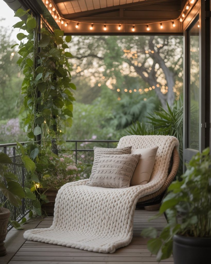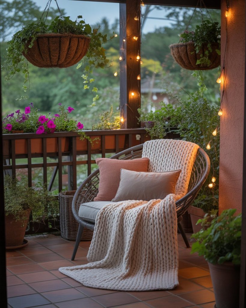 Transforming a small space into a cozy reading nook is easier than it seems. Use a lounge chair, layered blankets, and a side table for tea or coffee. In a small apartment balcony, add hanging plants and soft cushions for atmosphere. A covered option ensures all-weather comfort, while fairy lights add charm to evenings. This patio is personal and calming, perfect for retreating with your favorite book.