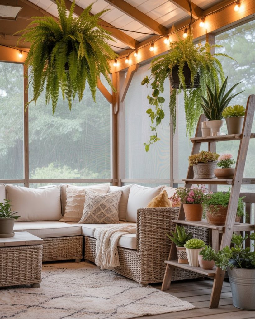 A screened in patio combines the best of indoor and outdoor living. Free from bugs, it’s ideal for warm nights or reading on weekends. Style it with boho textiles, wooden tables, and plenty of plants. Even a small space can become cozy with layered lighting and cushions. This design is perfect for turning overlooked corners into favorite hangouts.