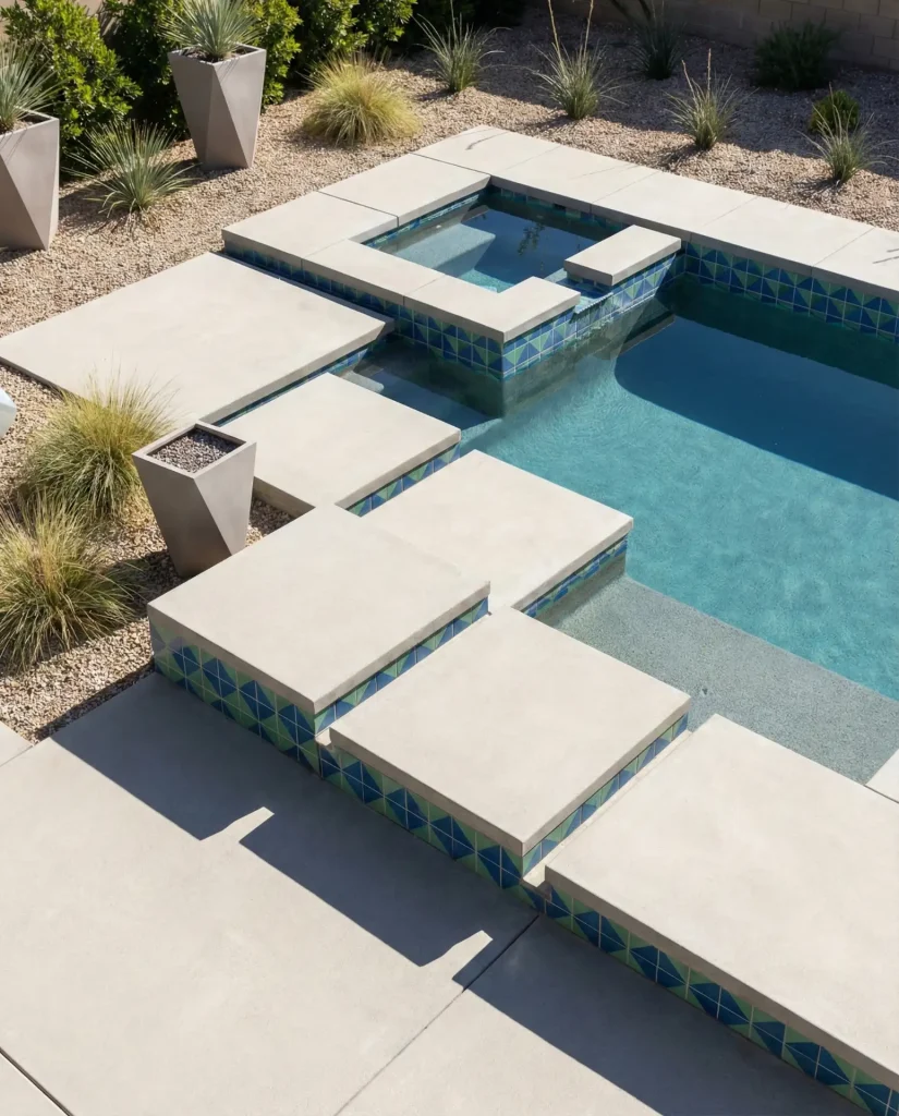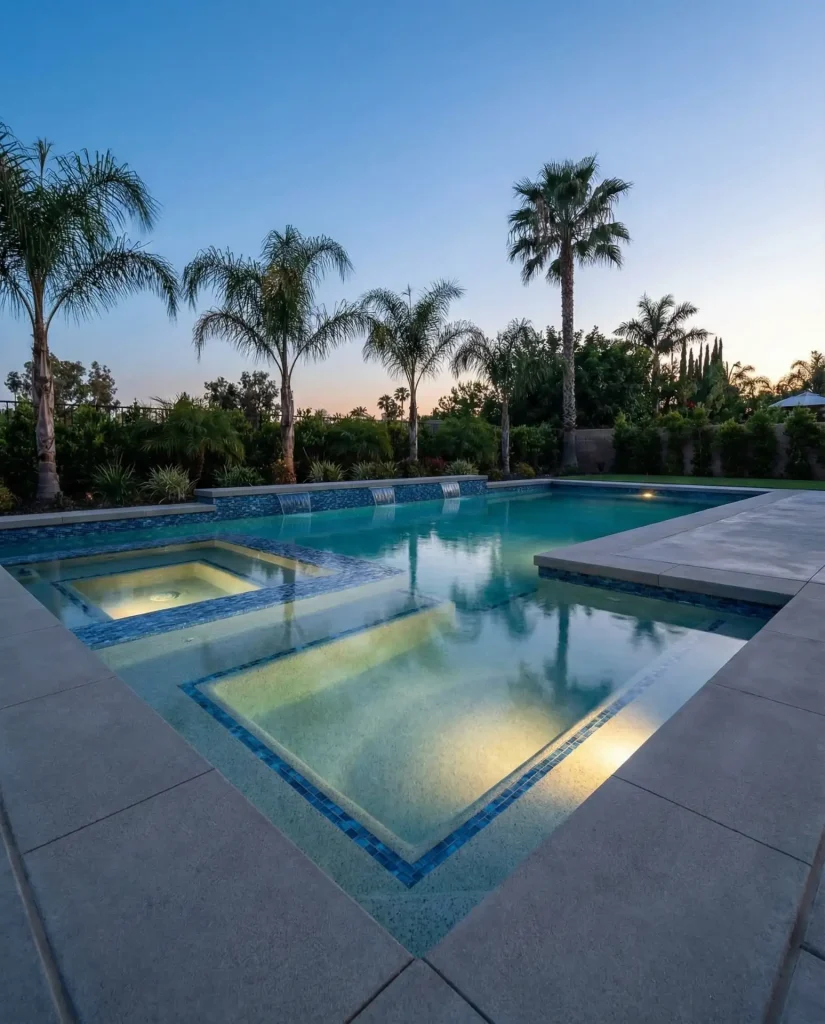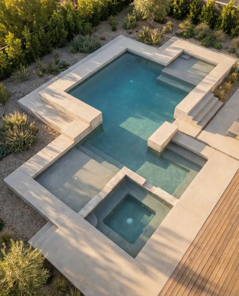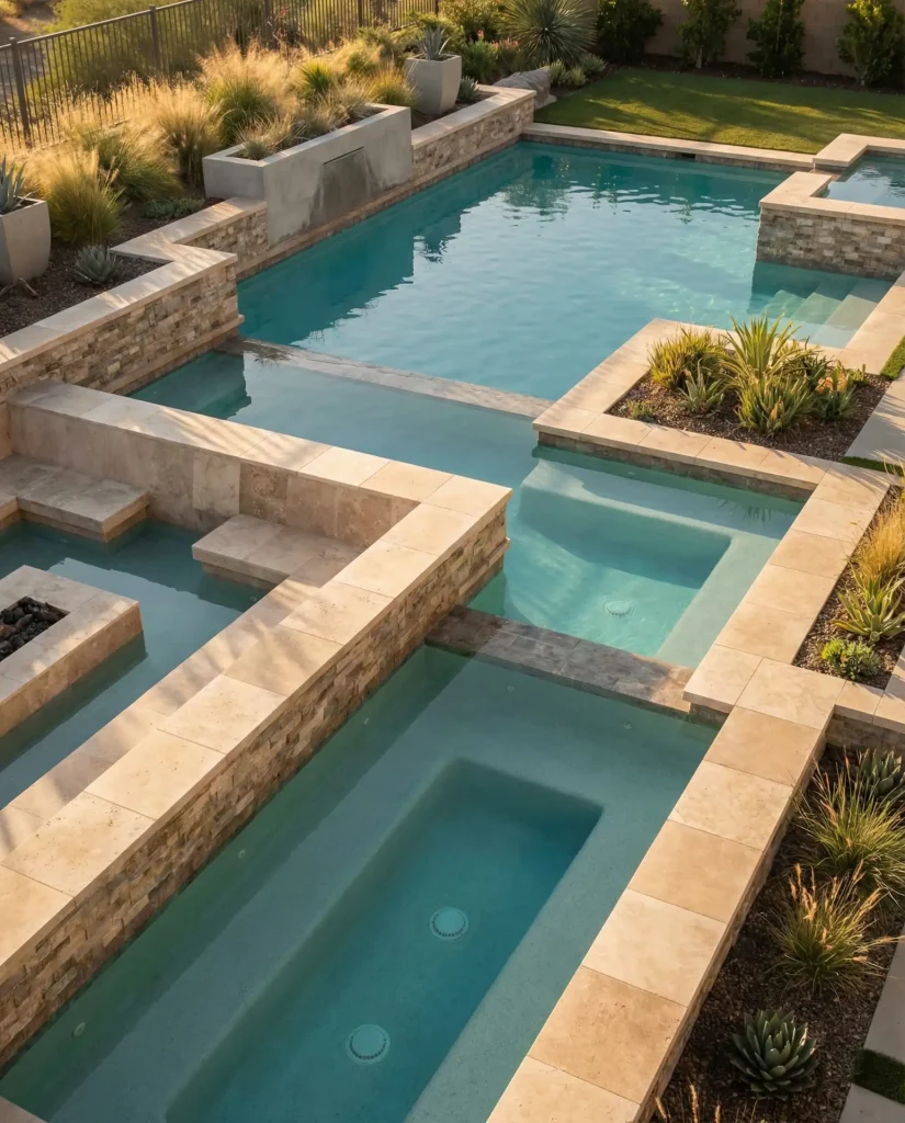 Budget insight: While the excavation and forming work for multiple levels adds roughly 15-20% to base construction costs, homeowners report that the added functionality justifies the investment—especially in warm-climate states like Arizona, Texas, and Florida, where pools see year-round use. The sunken lounge eliminates the need for separate spa construction, consolidating your water feature investment into one stunning centerpiece that handles both active swimming and relaxed socializing.