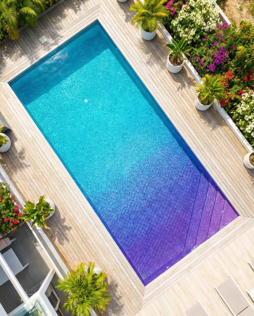My friend’s teenager designed their pool renovation using a Sims-inspired palette of mint green and coral tiles, and while the parents were skeptical during planning, the finished product became the neighborhood showpiece—it photographs beautifully and reflects the family’s creative personality. Custom tile work adds $15-$30 per square foot depending on pattern complexity, but the investment creates a truly unique feature that stands apart from cookie-cutter blue pools. This approach resonates particularly with younger homeowners who view pools as lifestyle statements rather than generic amenities.