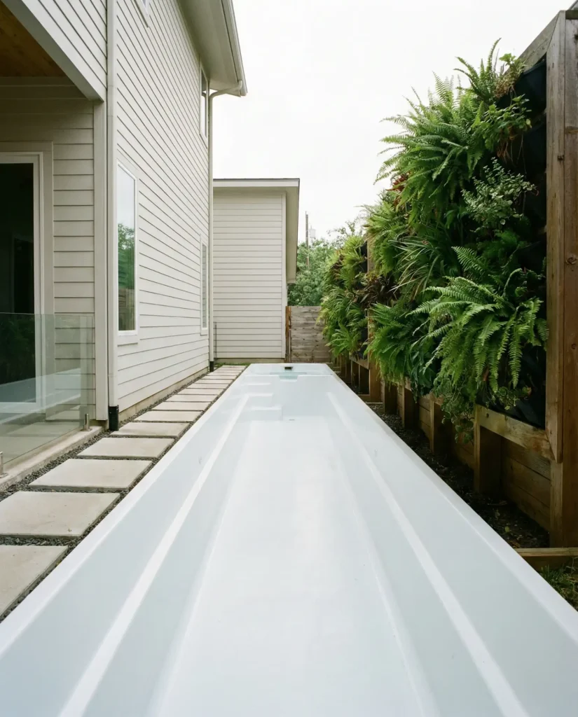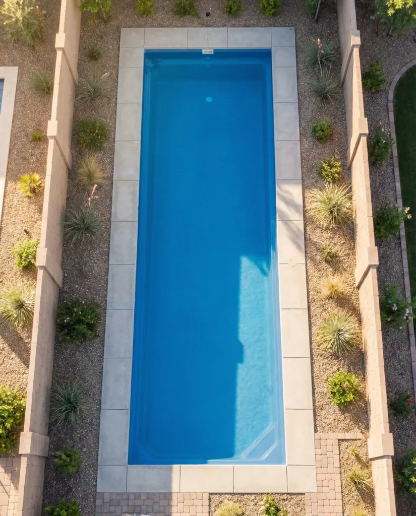 2. Sleek Fiberglass Lap Pool for Narrow Yards