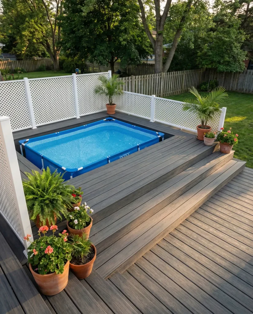 10. Sleek Intex Frame Pool with Custom Deck