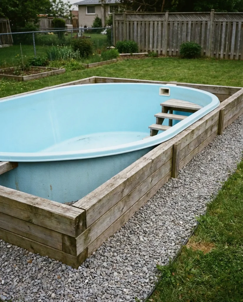 Common mistake: Failing to account for proper drainage around the retaining wall can lead to water pooling against the pool’s exterior walls, potentially causing rust or structural damage over time. Experienced installers always include perforated drain pipe at the base of the excavation connected to daylight drainage or a dry well. The partial burial approach works particularly well in regions with high water tables or rocky soil where full excavation proves difficult or expensive—the compromise delivers much of the visual benefit at a fraction of the cost and hassle.