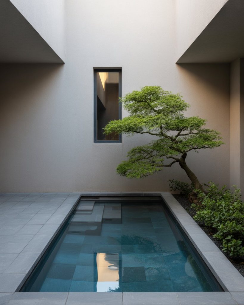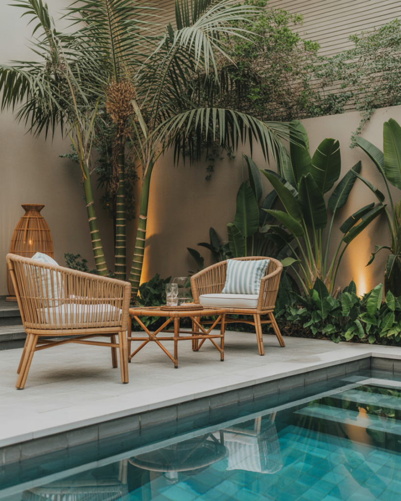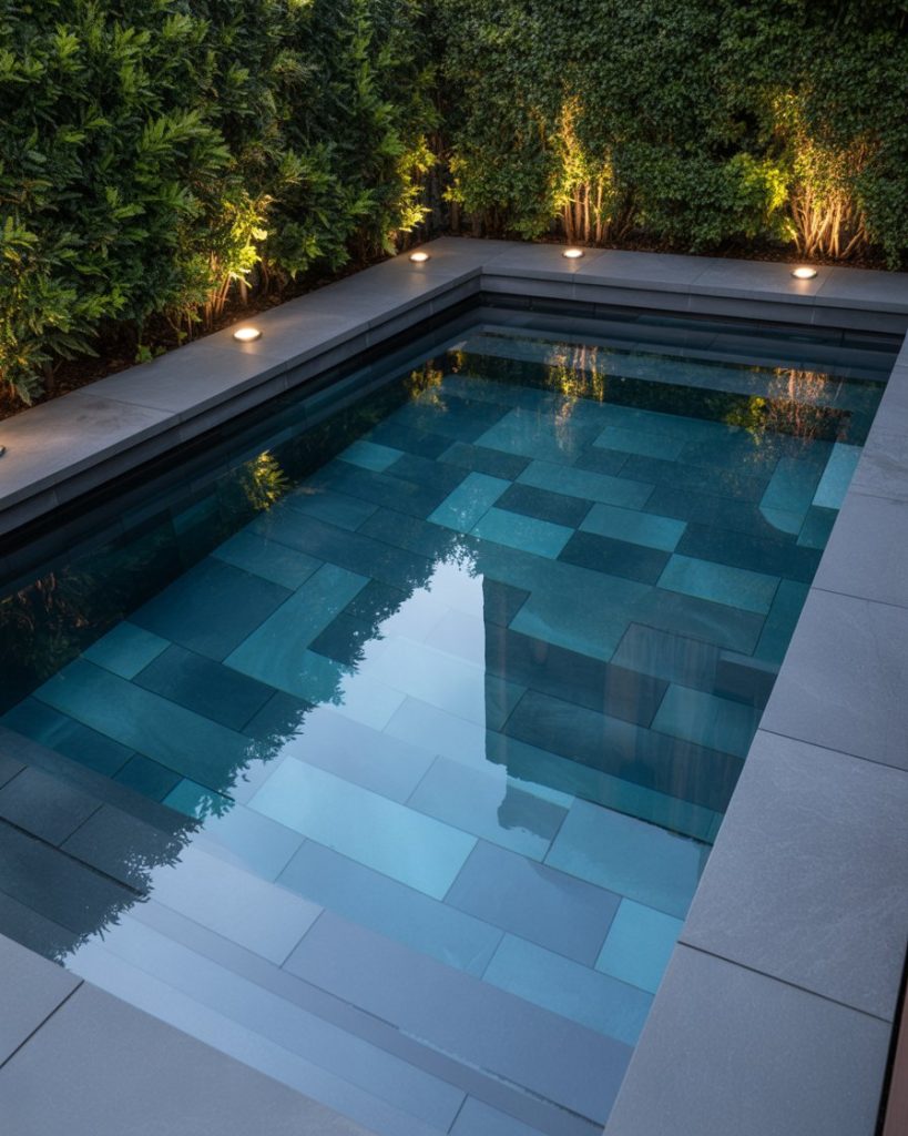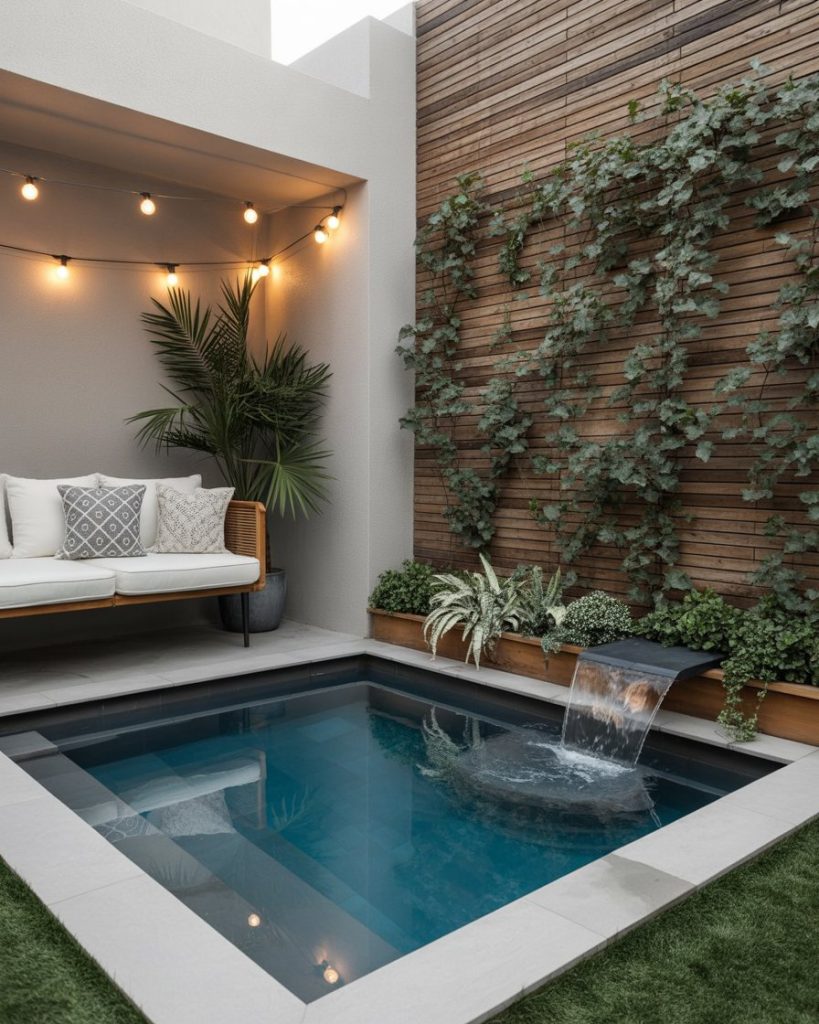 A small backyard doesn’t mean small style. Compact plunge or Intex pools framed by vertical plants or wooden privacy walls make the space inviting. Add soft lighting and light-colored paving to visually expand the area. These design ideas prove you can create serenity even in tight urban settings.