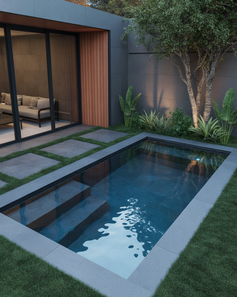 A plunge pool with a modern design is perfect for compact spaces. Use dark stone around the pool and minimalistic lighting for an elegant finish. Even in a small backyard, a sleek inground setup feels luxurious and intimate, ideal for cooling off after a long day.