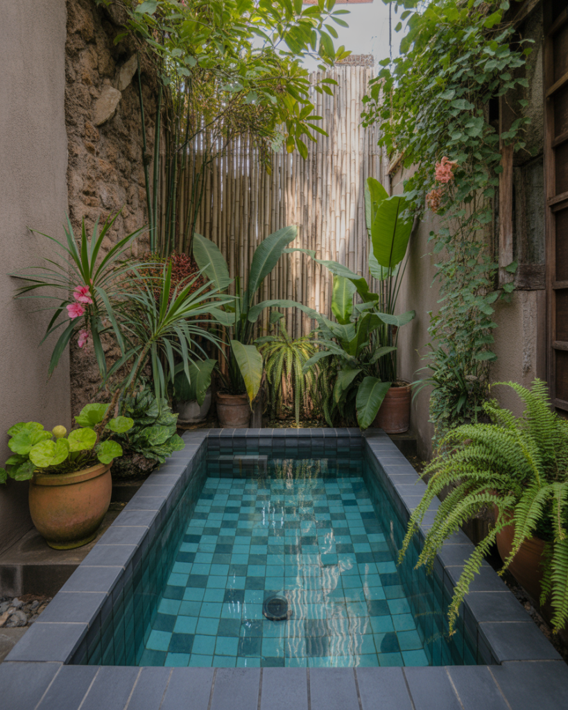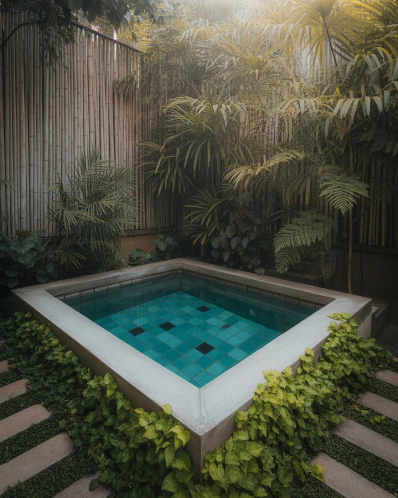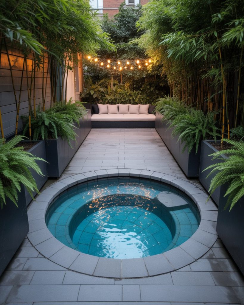 Turn your small backyard into a secluded paradise. Enclose your plunge or Intex pool with dense plants, bamboo screens, and natural decking. This design creates privacy and calm — a secret escape just steps from your door.