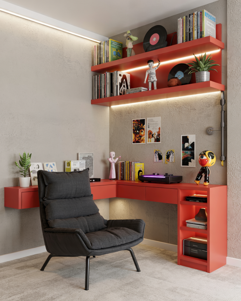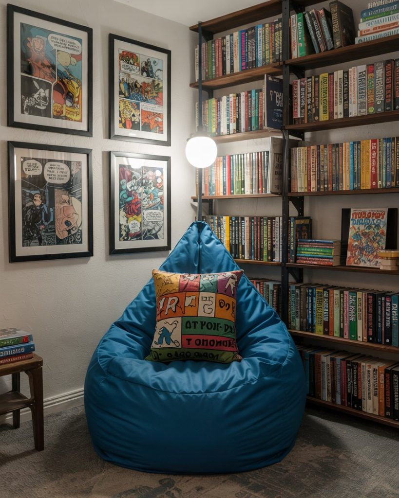This is a niche but growing trend—shelves sized for graphic novels, framed comic art, and a bright beanbag. Great for both a kid’s bedroom and adult collectors. Organizing the visual medium can pop and make a corner feel energetic rather than chaotic.