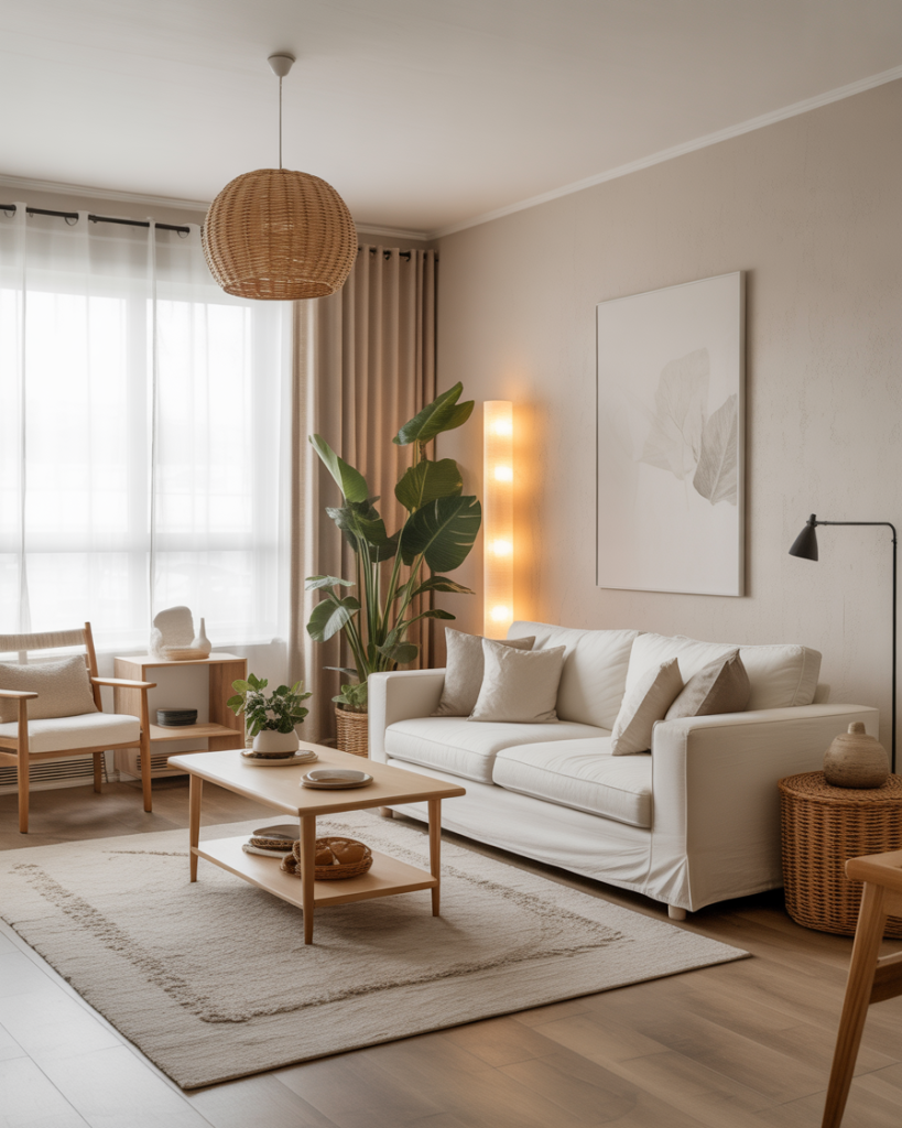 Blending Japandi, Japanese calm, and Nordic warmth creates a contemporary interior that feels both grounding and refined. This idea embraces low furniture, warm woods, and soft textures that suit a living space or bedroom equally well. I once helped a friend merge Scandinavian simplicity with Japanese restraint in her apartment, and the transformation brought an unexpected sense of serenity to her daily routine.