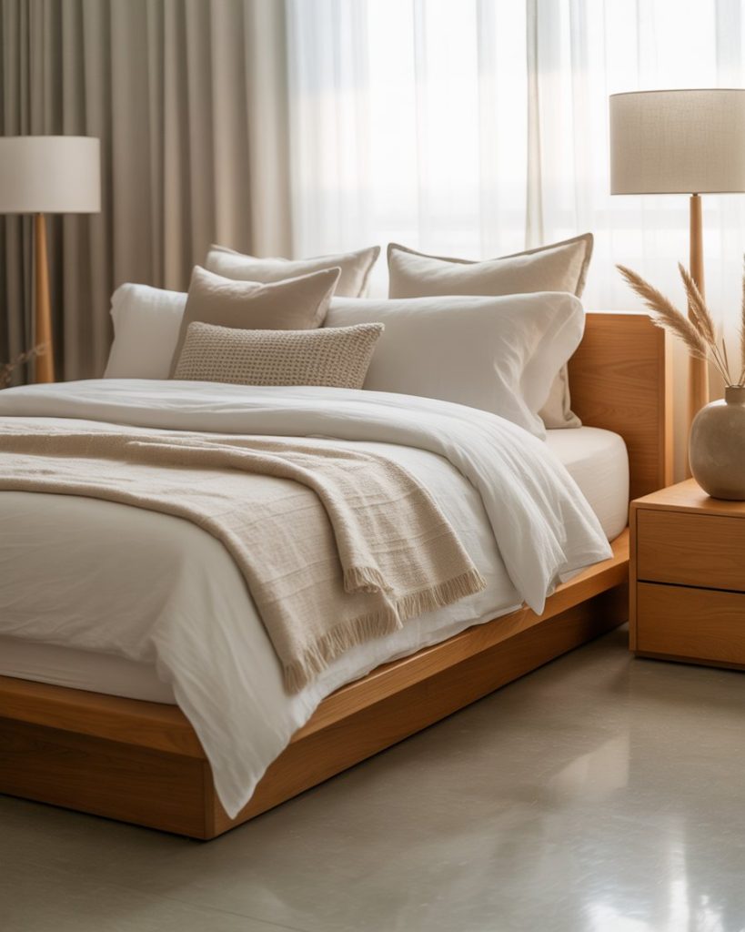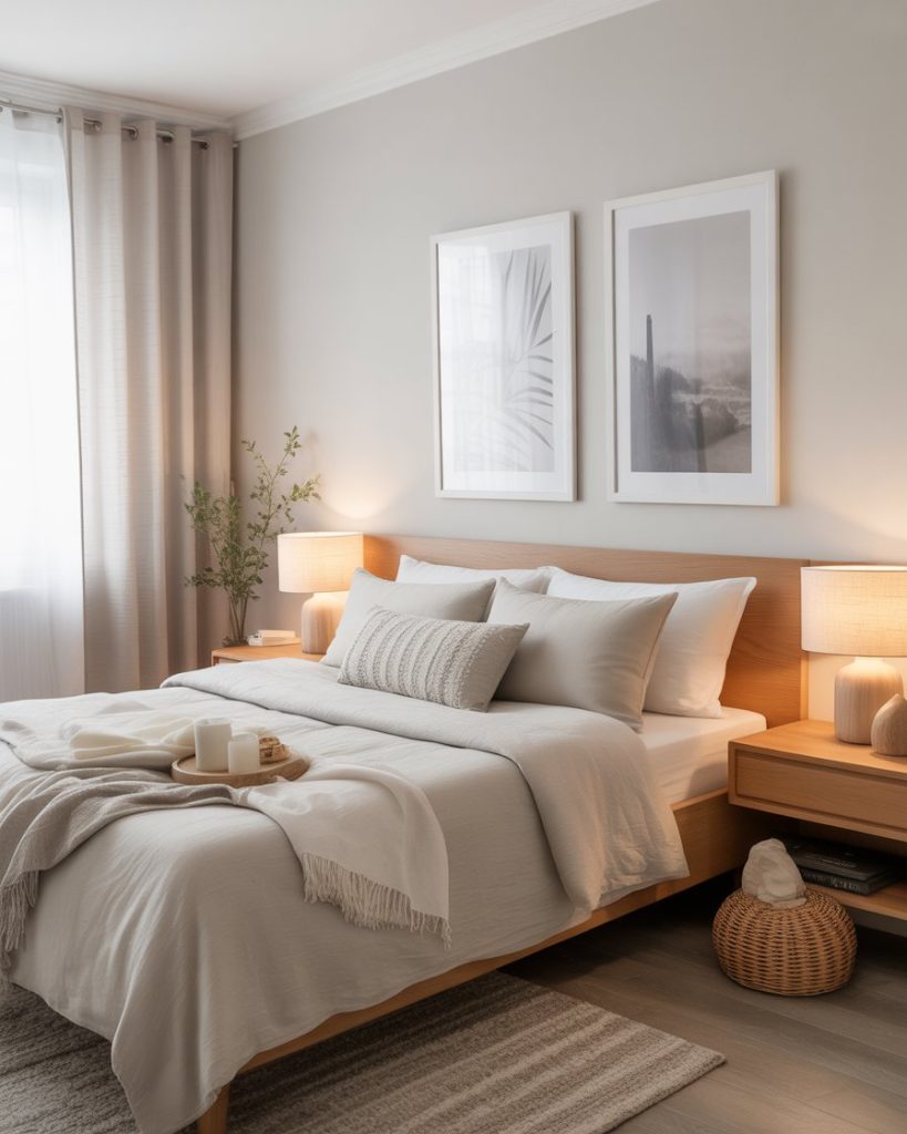 A bedroom with contemporary Scandinavian touches uses warm wood, layered bedding, and subtle accents. This creates a sanctuary-like atmosphere that suits both small apartments and family homes. I once slept in a Nordic-inspired guest room that felt effortlessly relaxing.