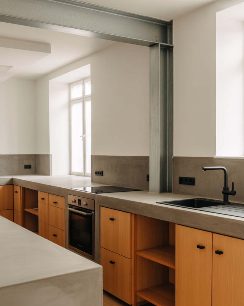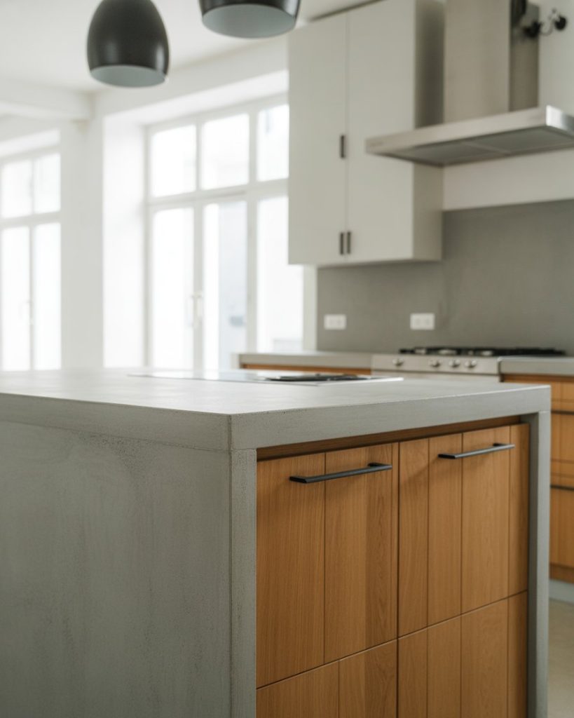 Blending industrial elements with Nordic softness transforms a kitchen into a stylish hybrid. Concrete counters balanced with natural wood achieve a modern yet inviting feel. This combination is often featured in Scandinavian loft renovations highlighted by design influencers.