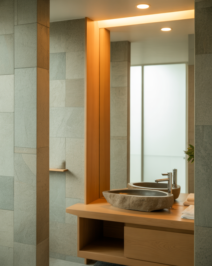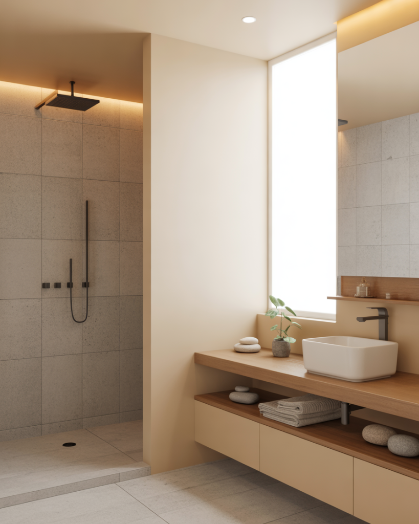 A Scandinavian bathroom embraces clean geometry, natural textures, and practical storage. Soft woods pair with stone and matte finishes for a spa-like experience. Many designers, including those at Nordic Design, emphasize warm lighting to keep dark tile or muted tones feeling inviting rather than cold.