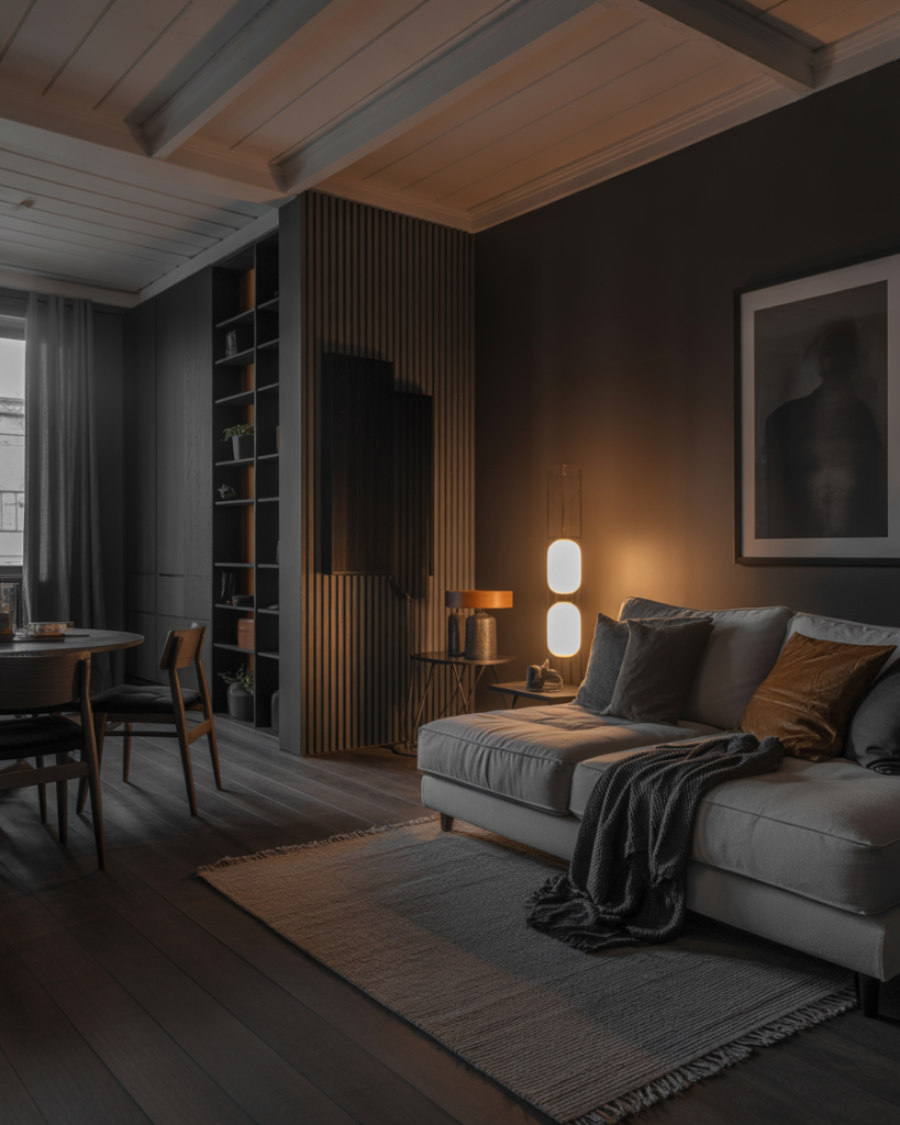 While often associated with light neutrals, Scandinavian interiors can be beautifully moody using deep hues, dark woods, and layered textiles. This works especially well in reading nooks or an office where atmosphere matters. I’ve seen homeowners embrace rich tones after discovering how grounding they feel during long working hours.