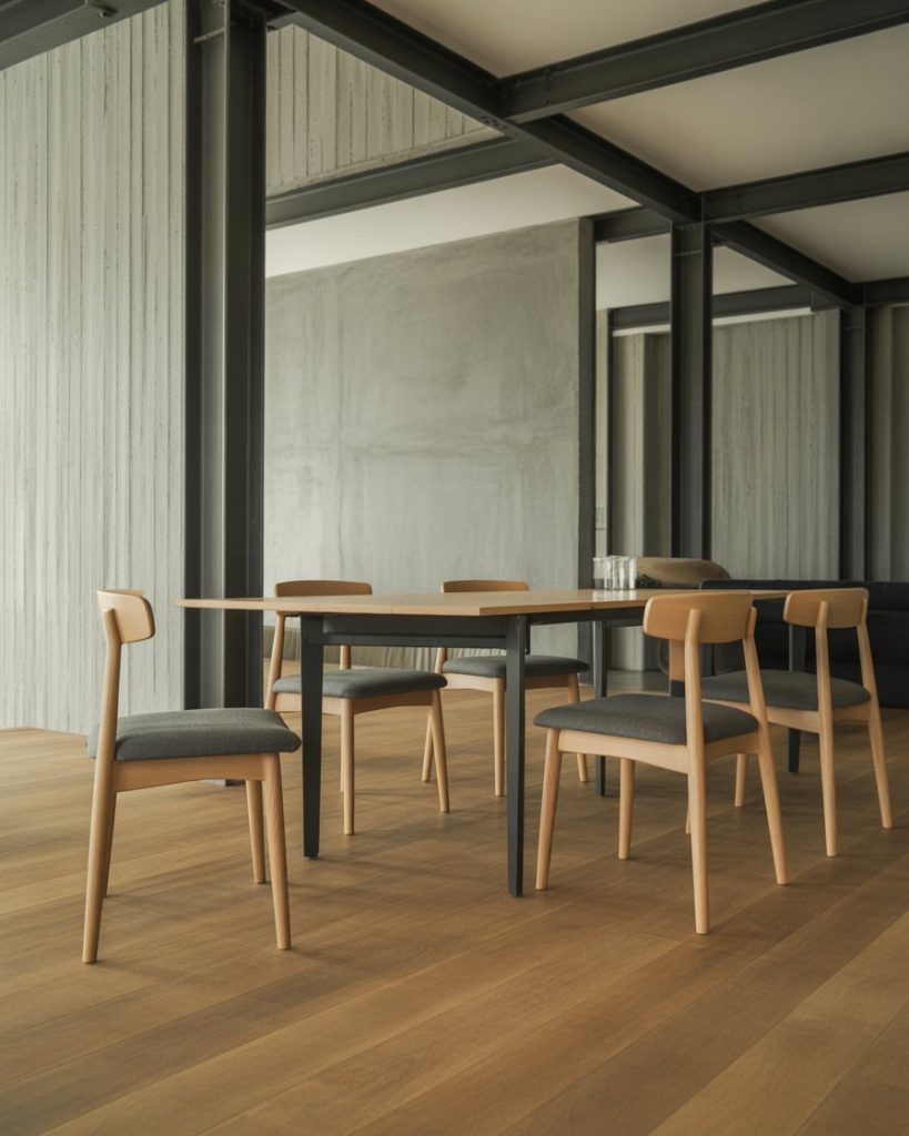 The Scandinavian-meets-industrial look softens concrete, metal, and sharp edges with warm woods and calmer tones. This hybrid is common in lofts and renovated warehouses where Nordic softness offsets raw architectural elements. I once toured a converted mill where Scandinavian textiles transformed the echoing space into something unexpectedly warm.